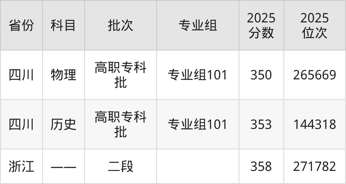 黑龙江职业学院第101组:2025年投档录取最低分为349分,录取最低位次为105564名。