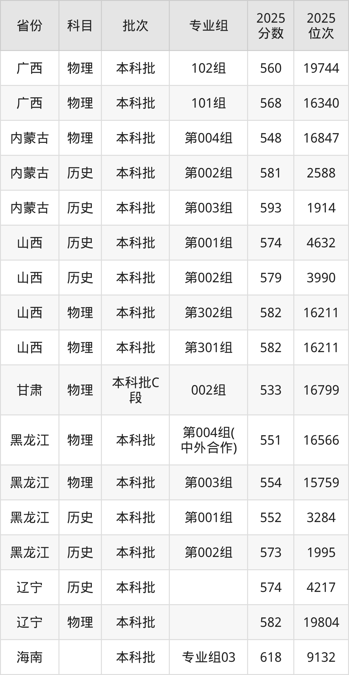 2025年投档录取最低分为582分,录取最低位次为19804名。