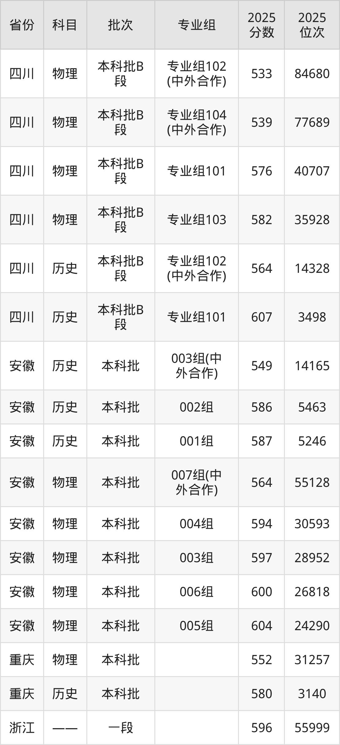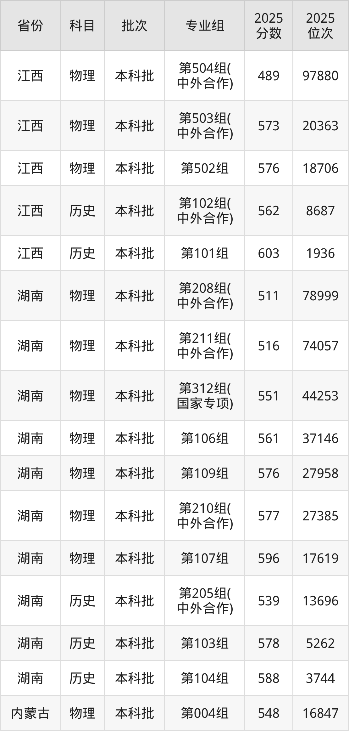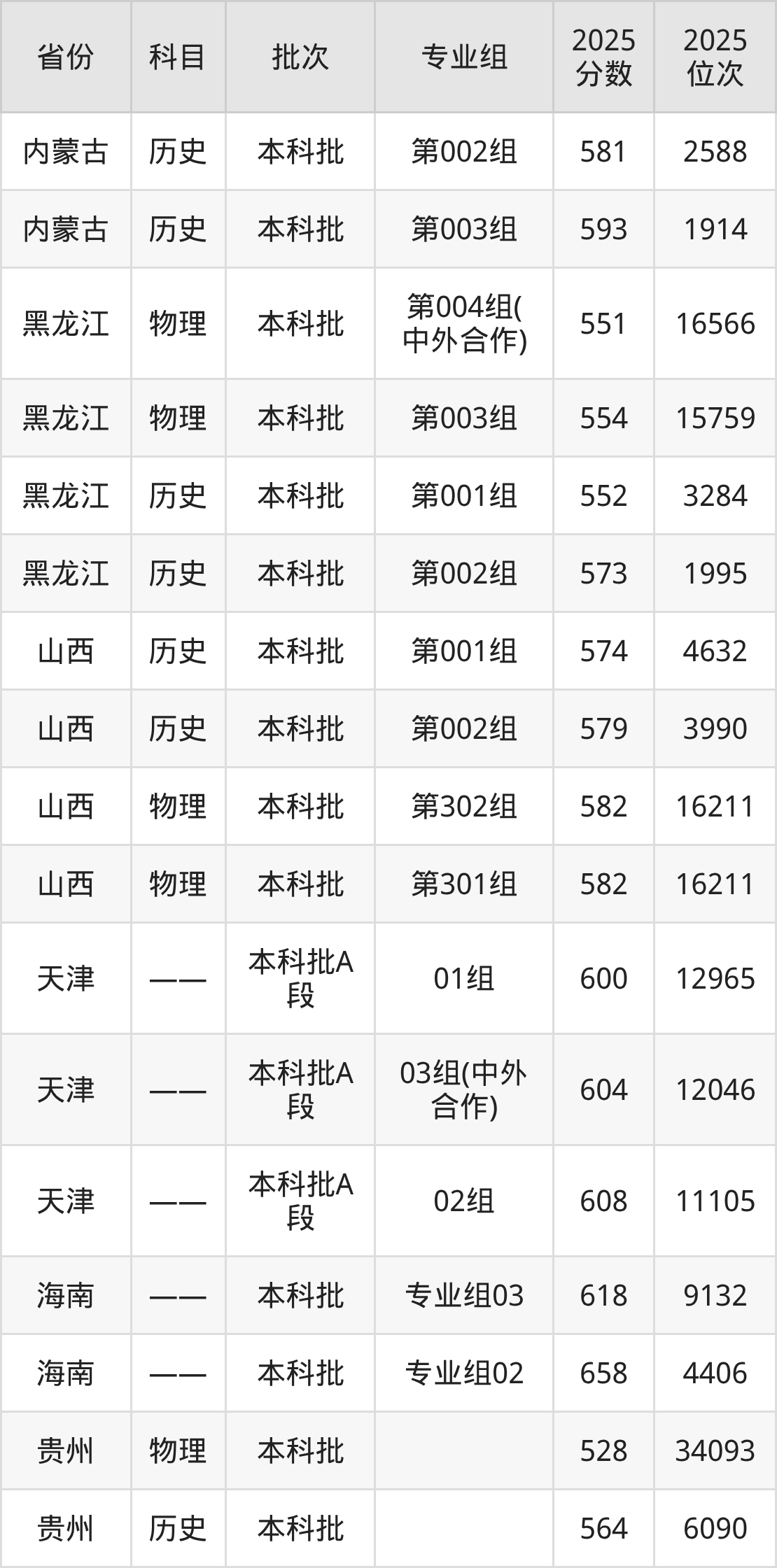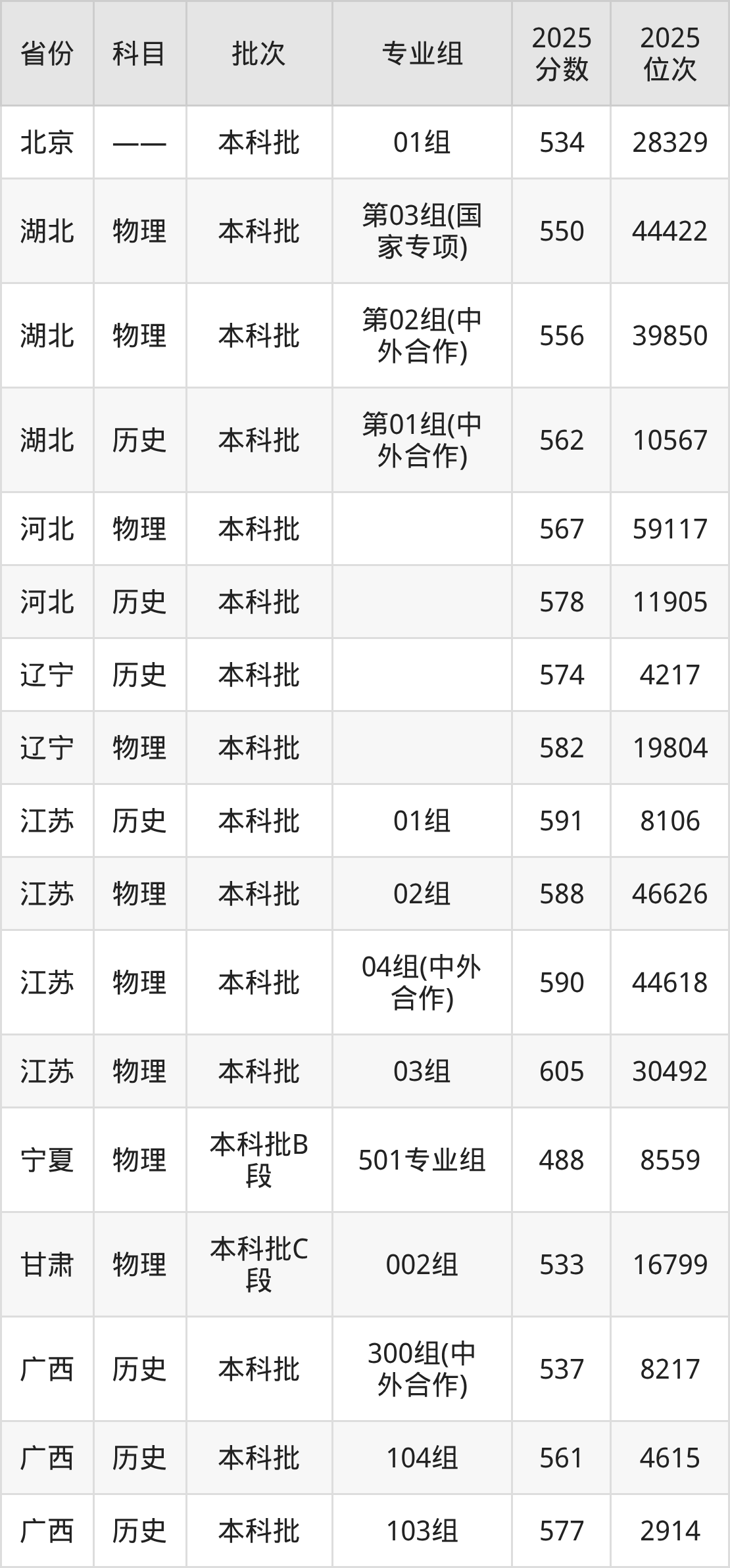宁波大学第201组(中外合作办学组):2025年投档录取最低分为571分,录取最低位次为84302名。