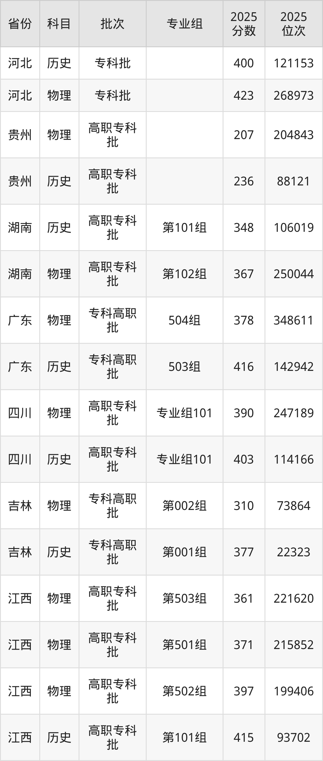 下面是2025年贵州机电职业技术学院全国录取分数线一览表,请查阅。