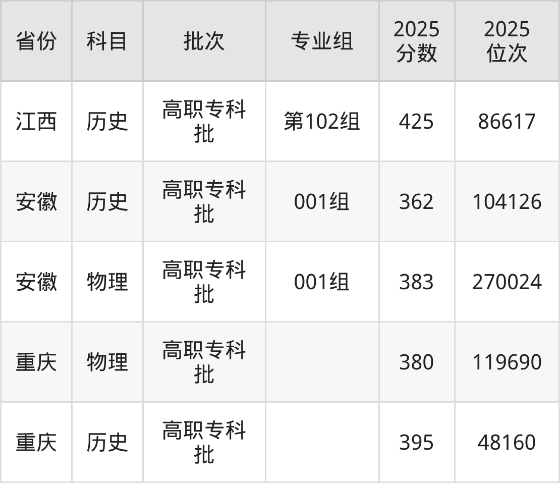 贵州机电职业技术学院001组:2025年投档录取最低分为383分,录取最低位次为270024名。