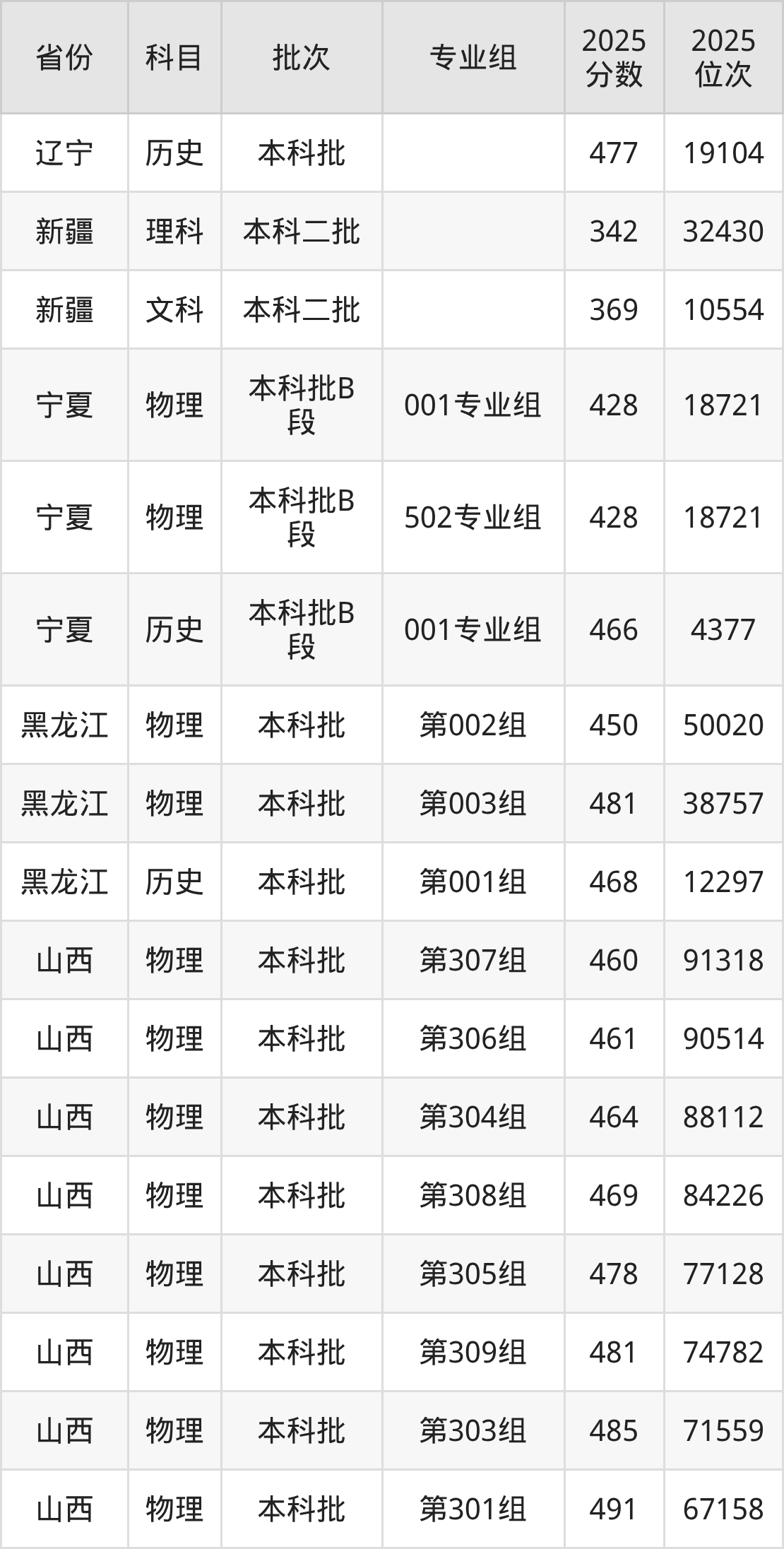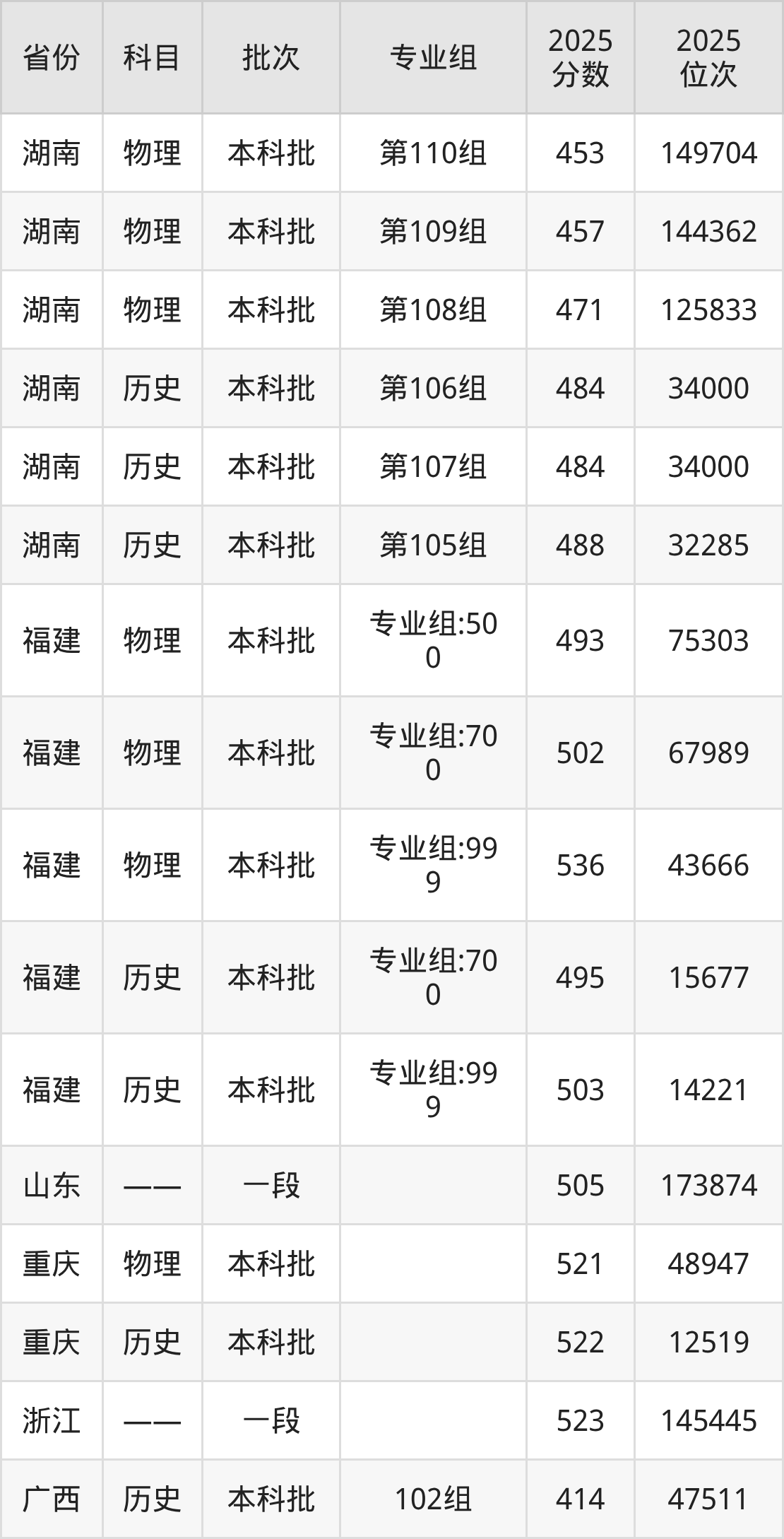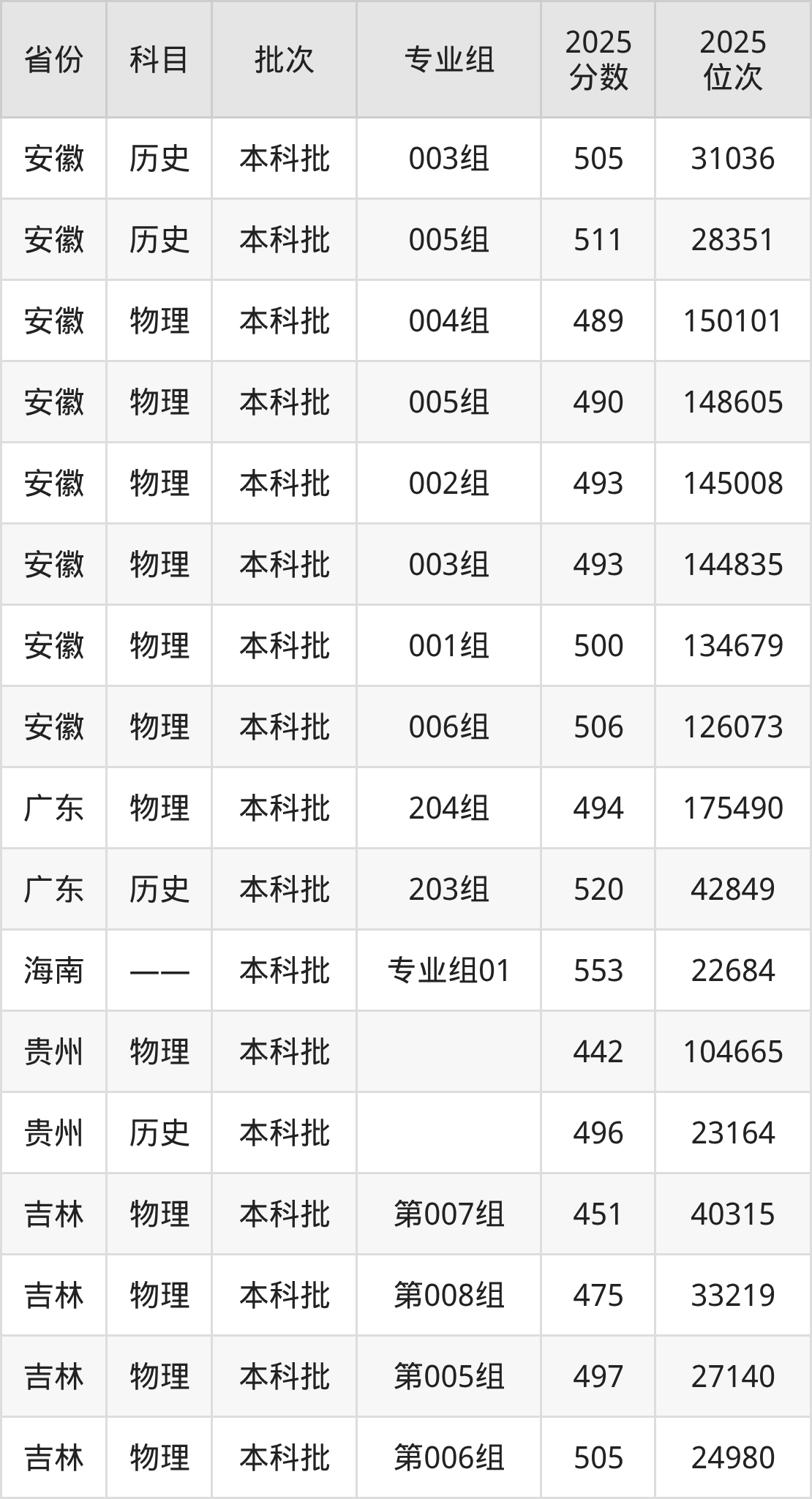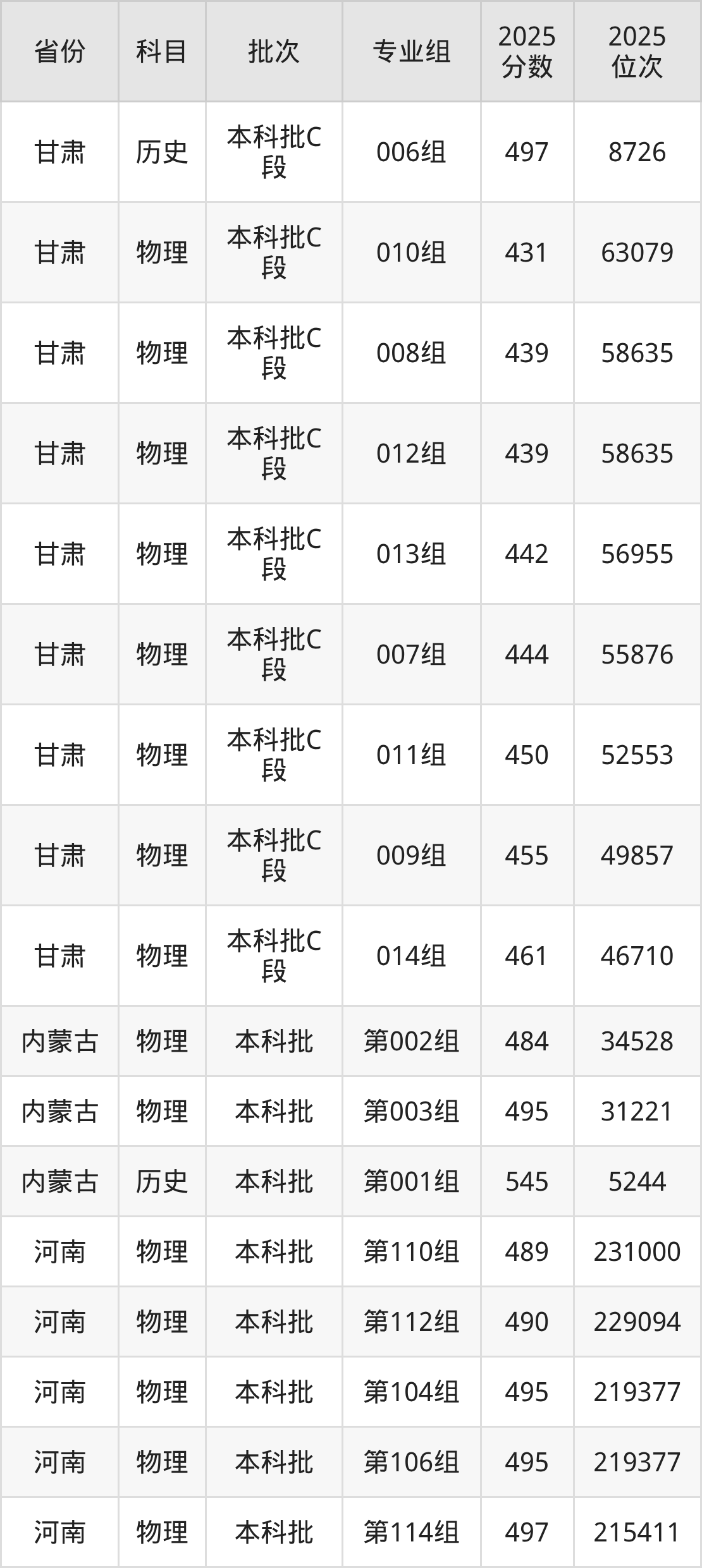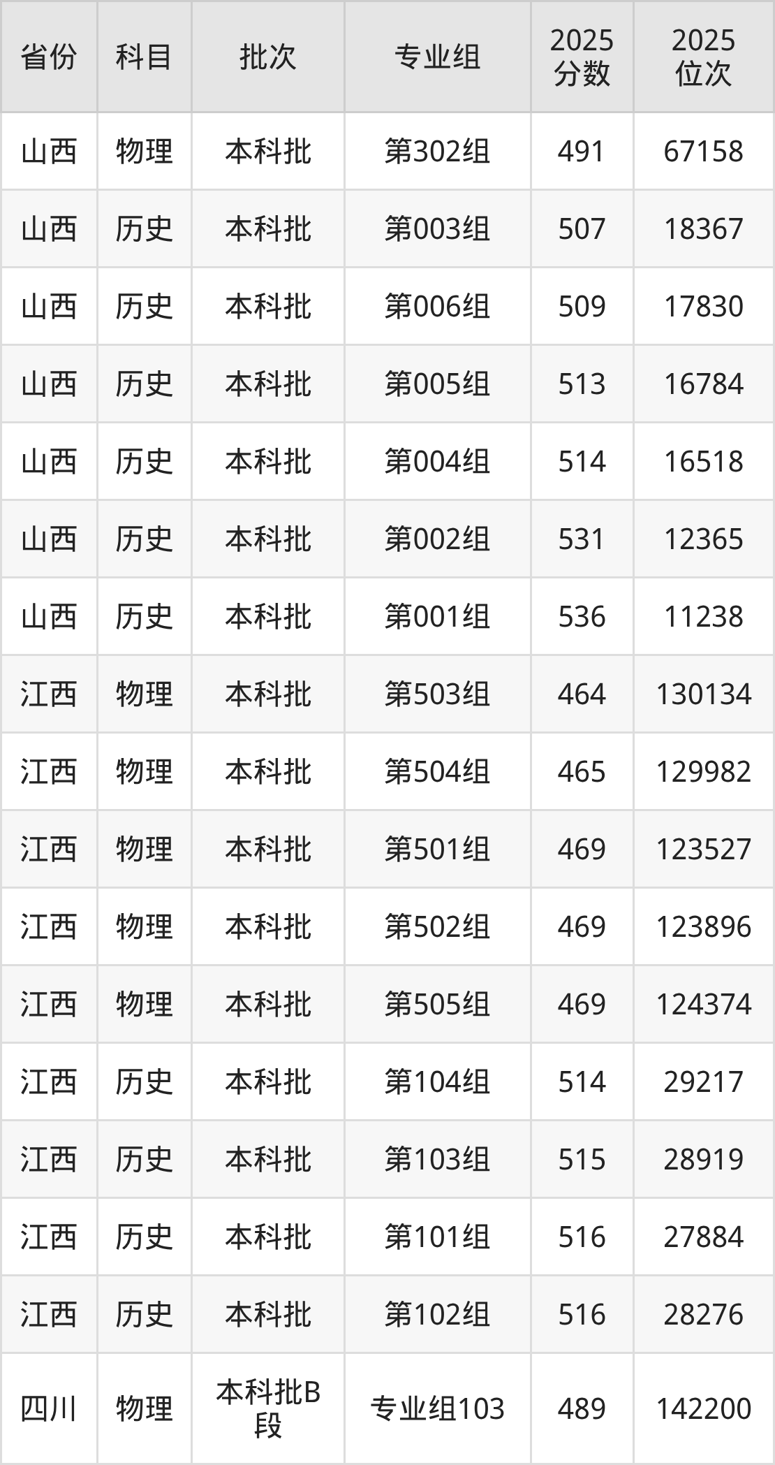 普通类本科物理类最低489分,本科历史类最低501分