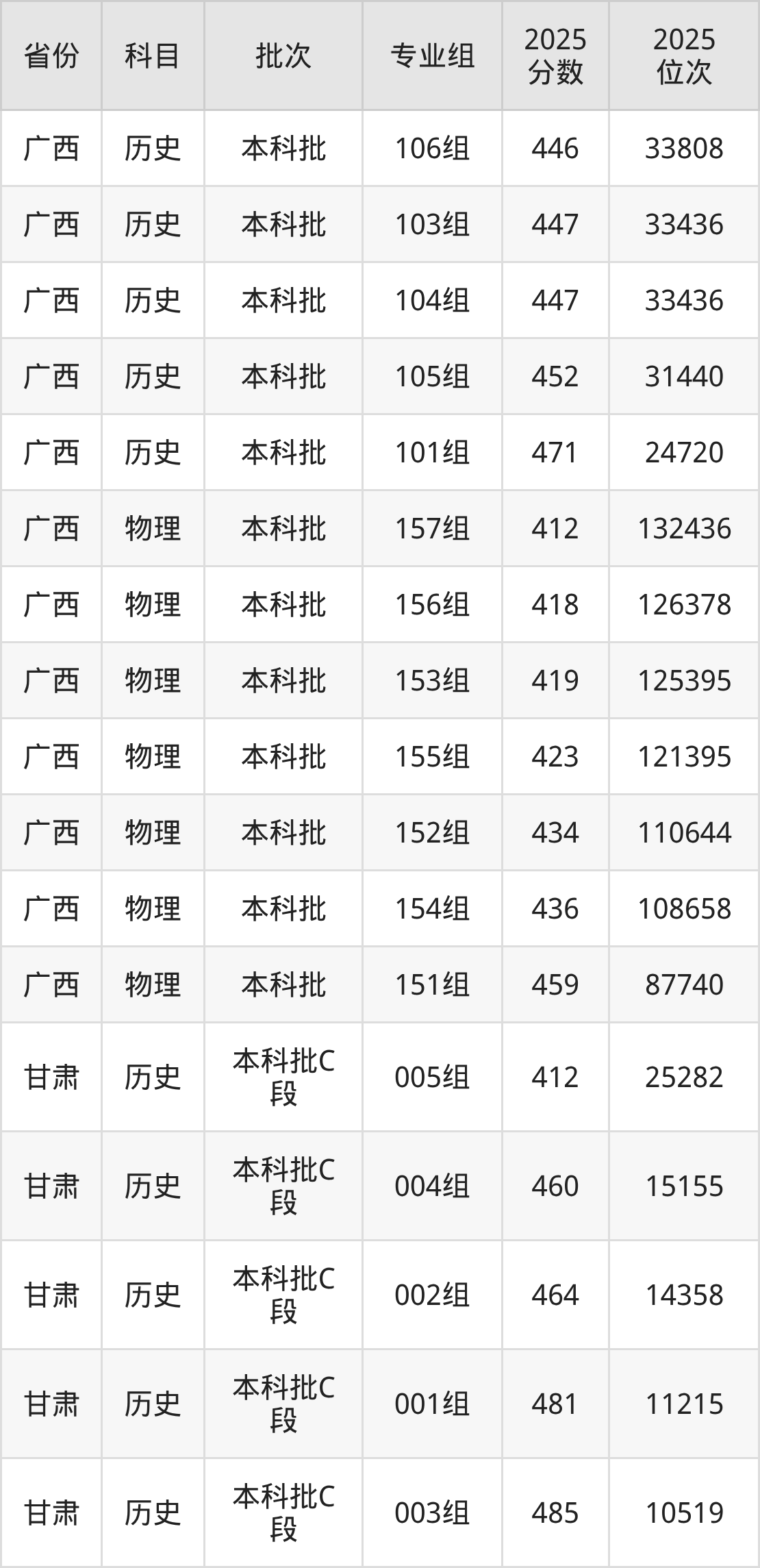 普通类本科物理类最低428分,本科历史类最低466分