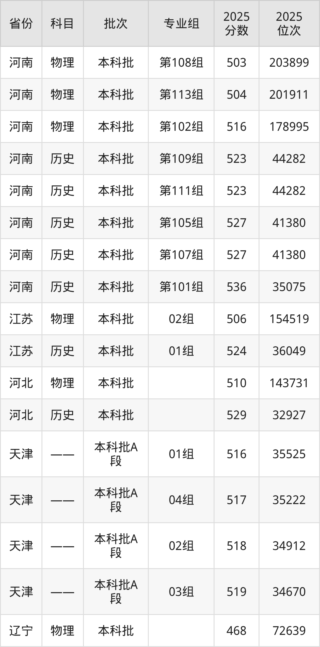 鞍山师范学院001组:2025年投档录取最低分为503分,录取最低位次为31700名。