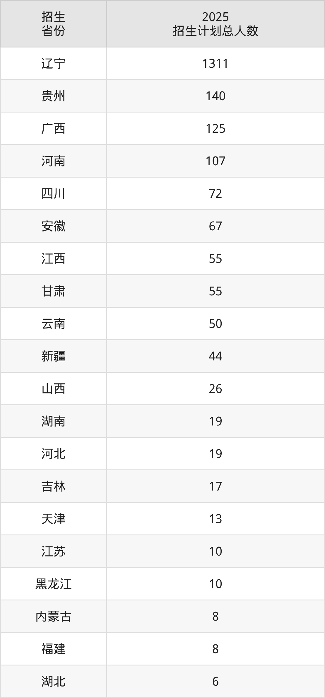 2025年鞍山师范学院面向全国27个省市开展本科招生;招生专业共28个,招生人数共2182人。2025年在辽宁省招生计划总人数是1311人,其中,鞍山师范学院在辽宁省招生人数最多的是英语。鞍山师范学院在各省具体招生人数情况如下表。