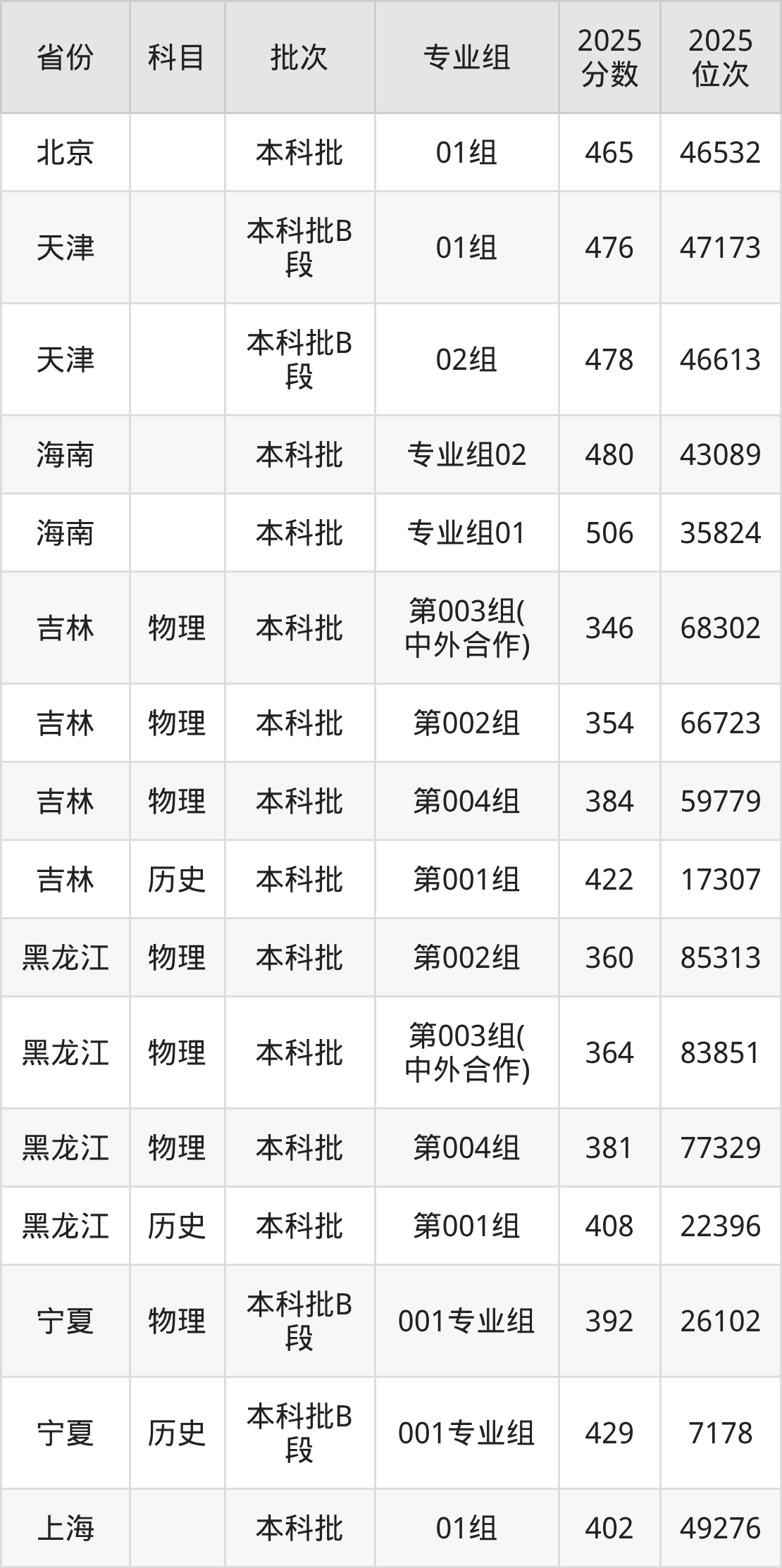 长春财经学院03组(中外合作办学):2025年投档录取最低分为466分,录取最低位次为202992名。