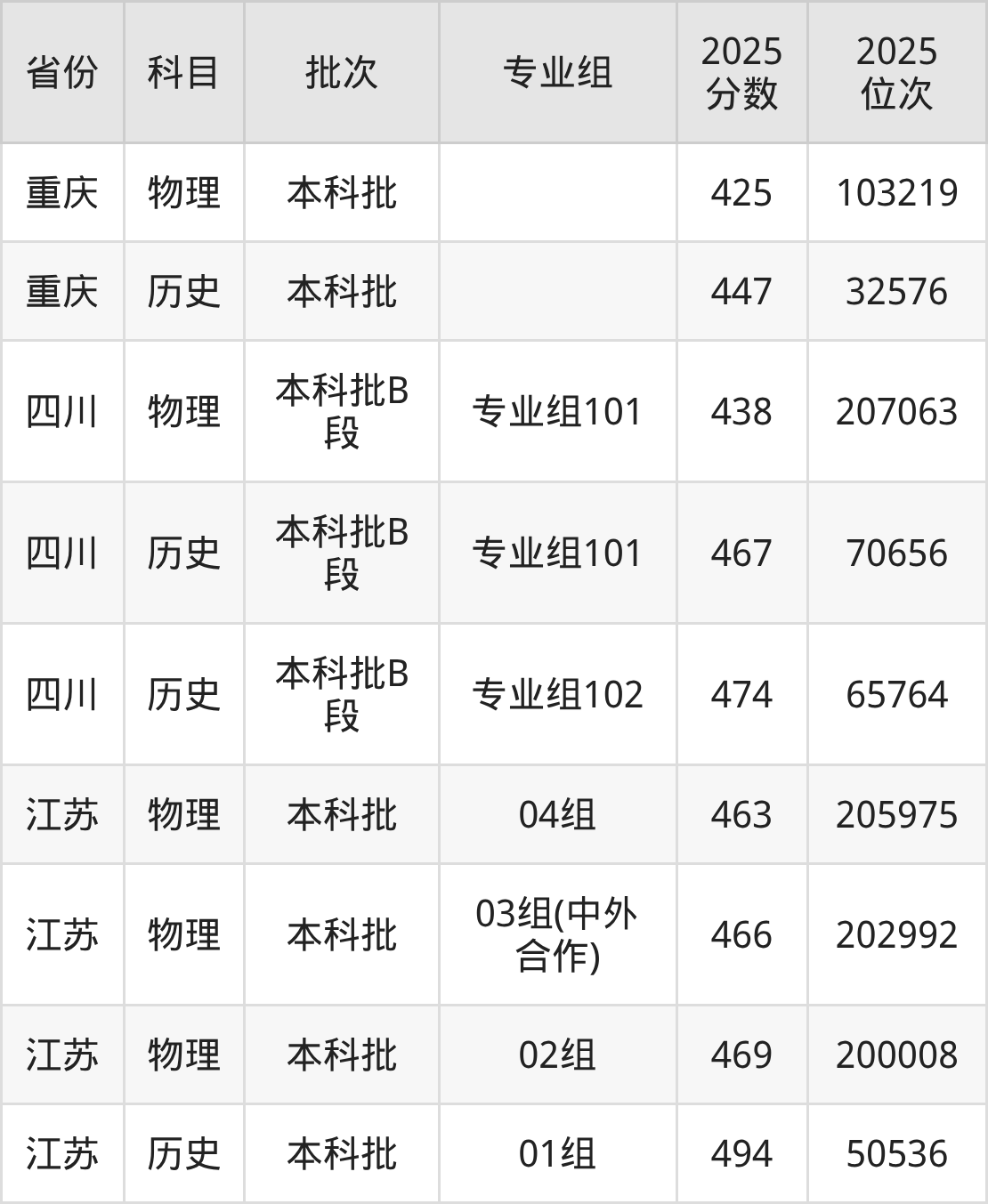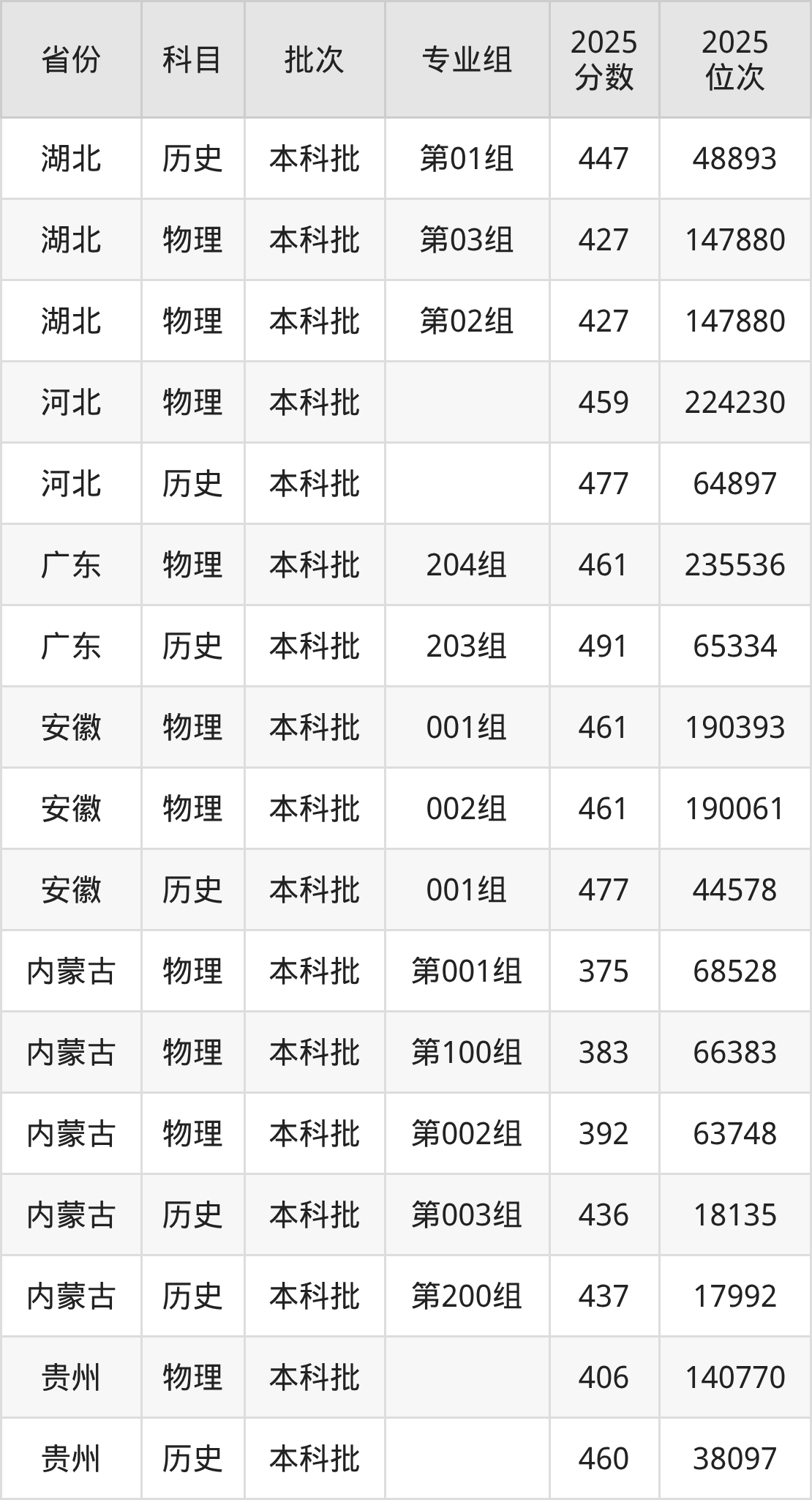 2025年投档录取最低分为447分,录取最低位次为32576名。