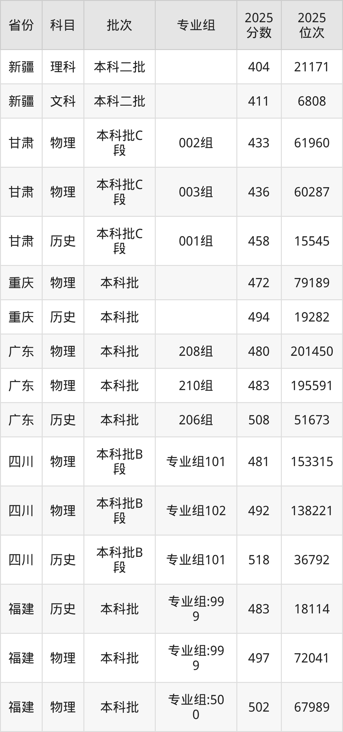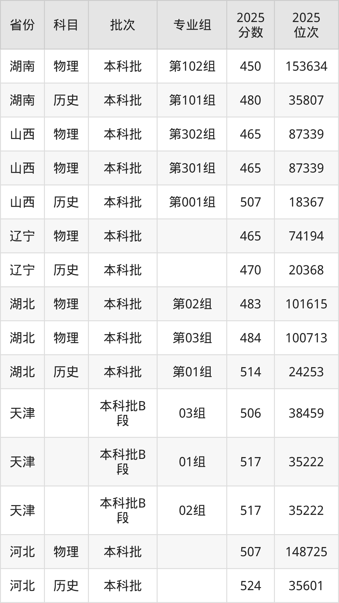 2025年投档录取最低分为478分,录取最低位次为30232名。