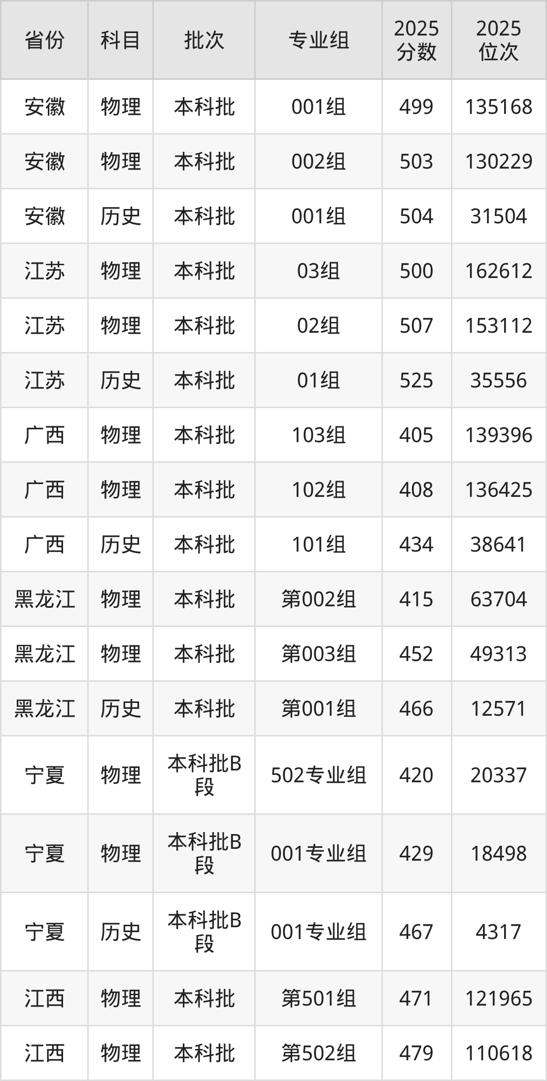 南京审计大学金审学院第001组:2025年投档录取最低分为493分,录取最低位次为8829名。