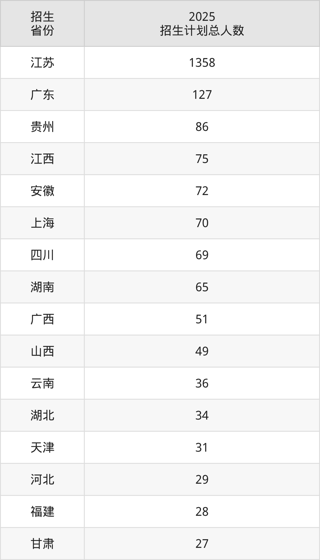 2025年南京审计大学金审学院面向全国28个省市开展本科招生;招生专业共18个,招生人数共2390人。2025年在江苏省招生计划总人数是1358人,其中,南京审计大学金审学院在江苏省招生人数最多的是审计学。南京审计大学金审学院在各省具体招生人数情况如下表。