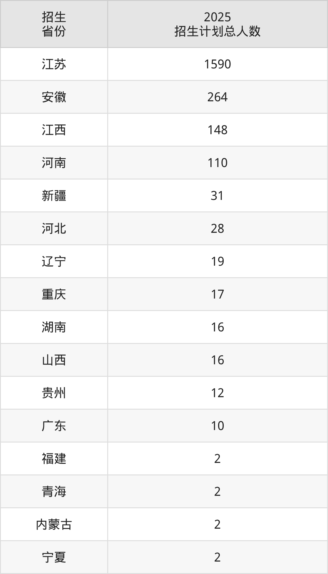 2025年江苏海事职业技术学院面向全国22个省市开展专科招生;招生专业共28个,招生人数共2281人。2025年在江苏省招生计划总人数是1590人,其中,江苏海事职业技术学院在江苏省招生人数最多的是轮机工程技术。江苏海事职业技术学院在各省具体招生人数情况如下表。