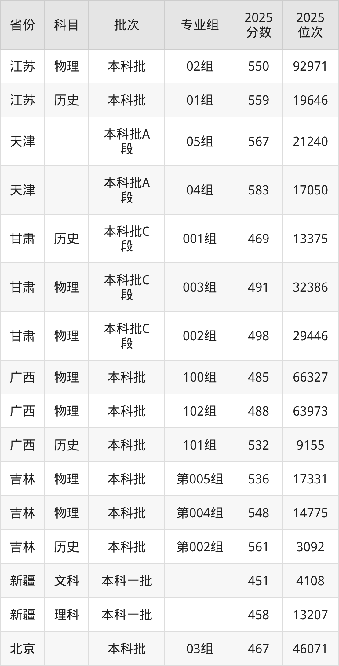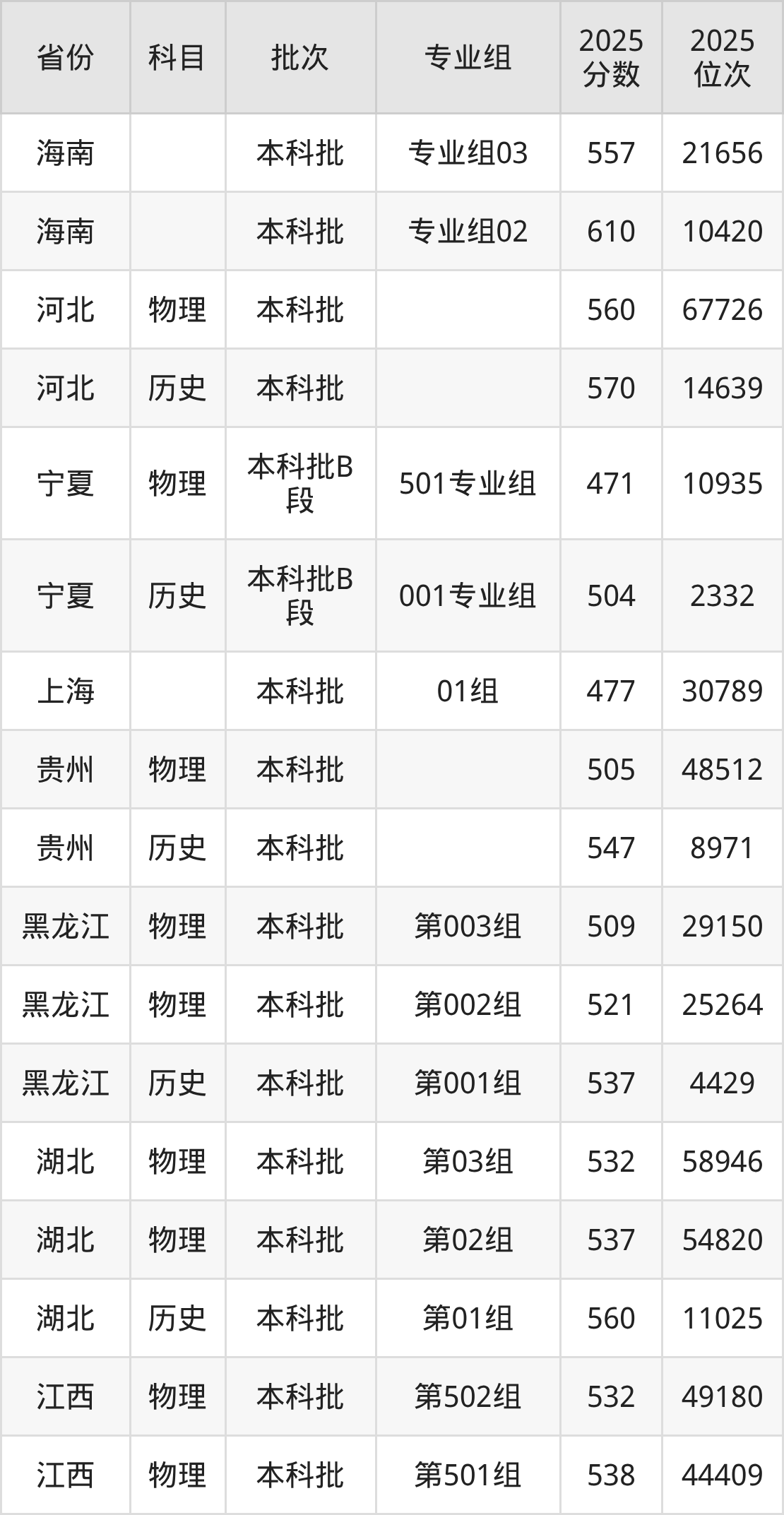 2025年投档录取最低分为458分,录取最低位次为13207名。
