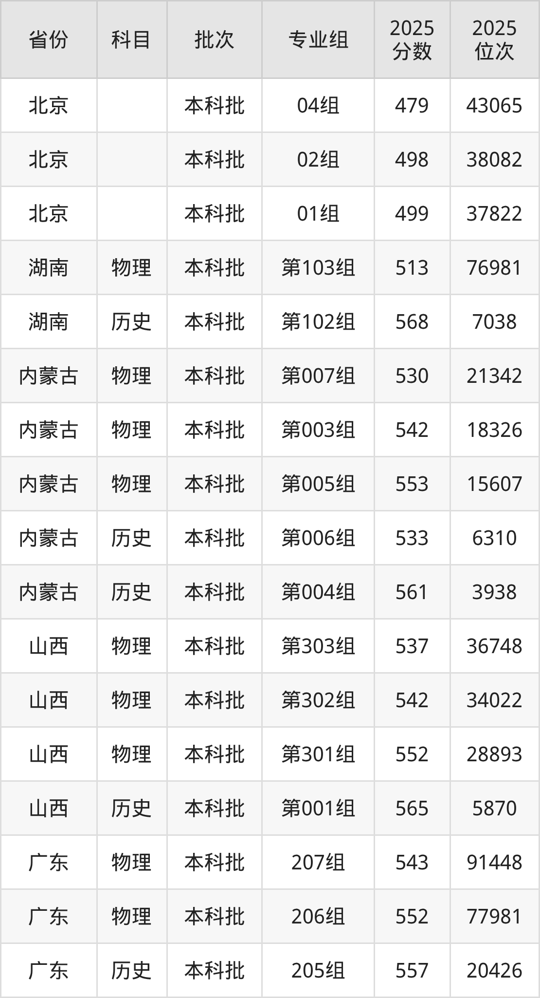 下面是2025年北京印刷学院全国录取分数线一览表,请查阅。
