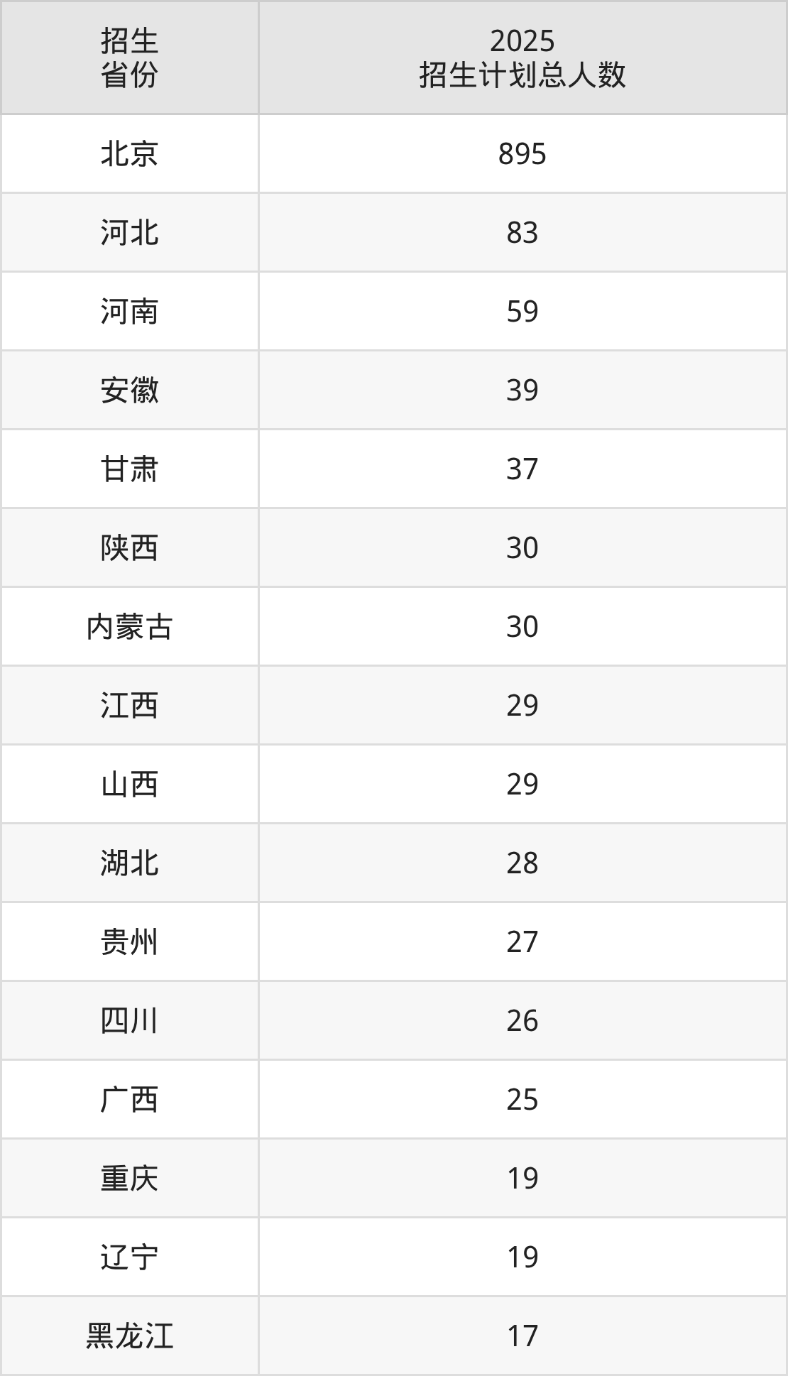 2025年北京印刷学院面向全国28个省市开展本科招生;招生专业共22个,招生人数共1471人。2025年在北京市招生计划总人数是895人,其中,北京印刷学院在北京市招生人数最多的是编辑出版学。北京印刷学院在各省具体招生人数情况如下表。