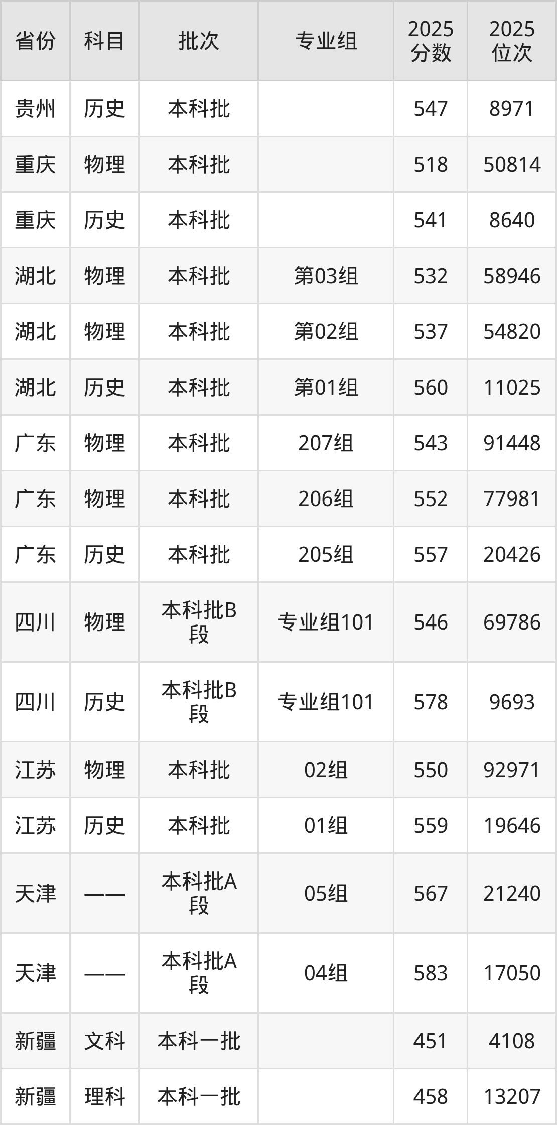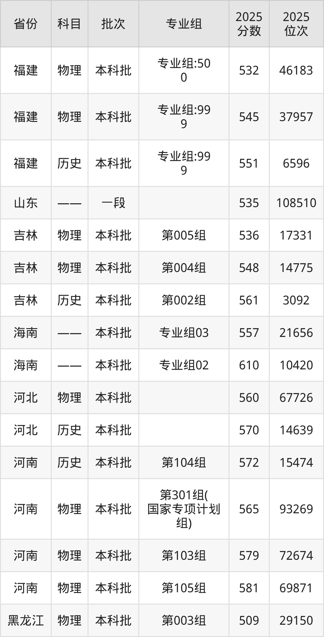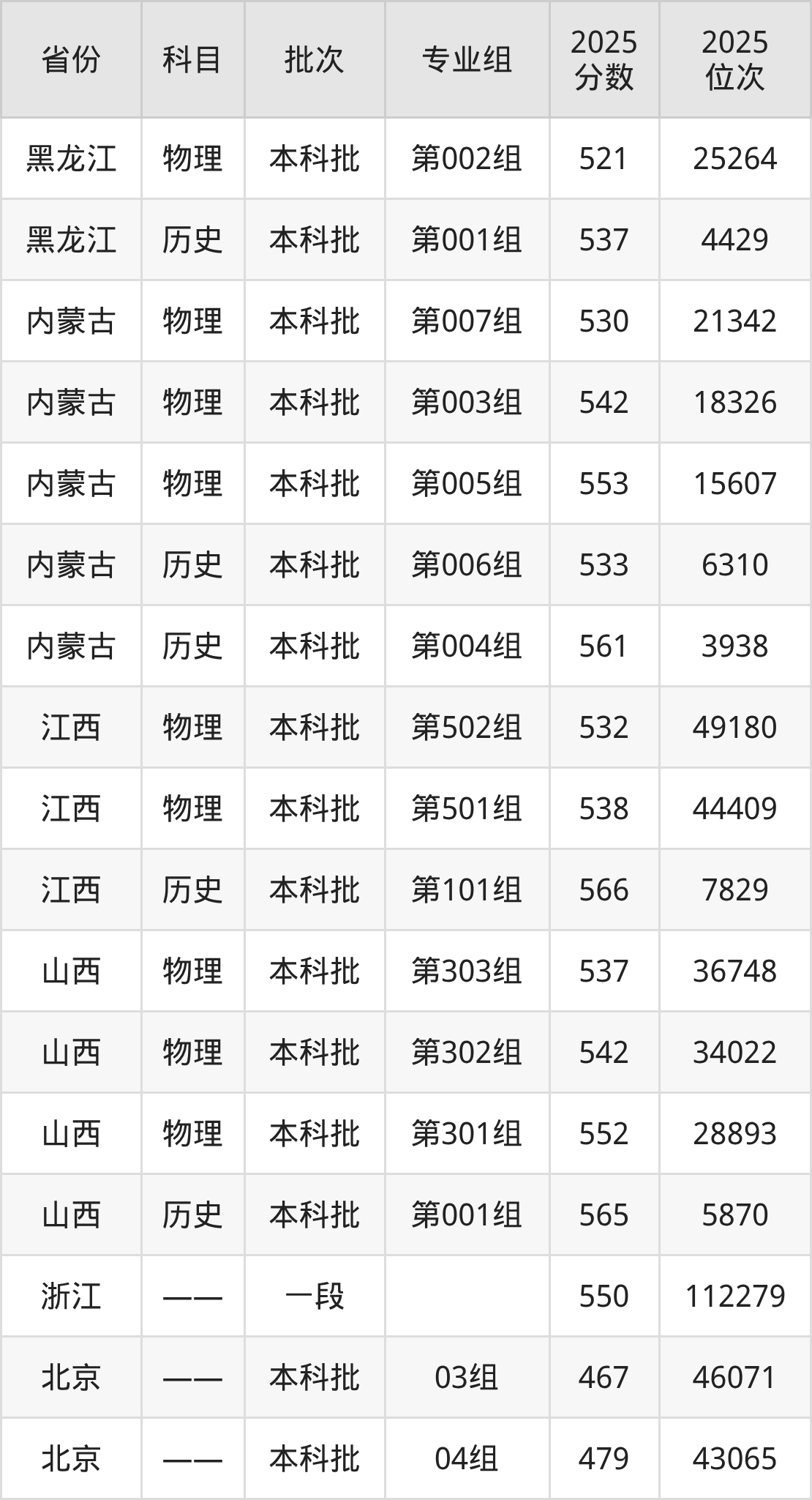 普通类本科历史类最低561分,本科物理类最低536分