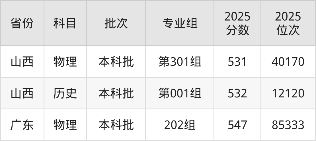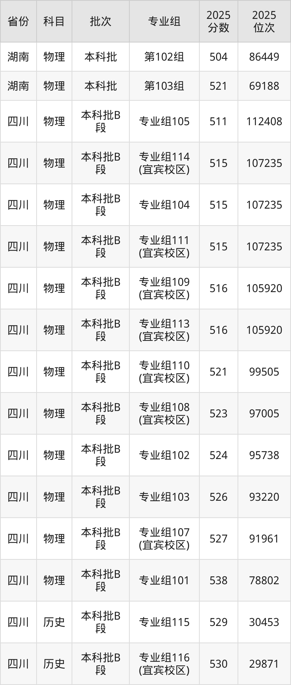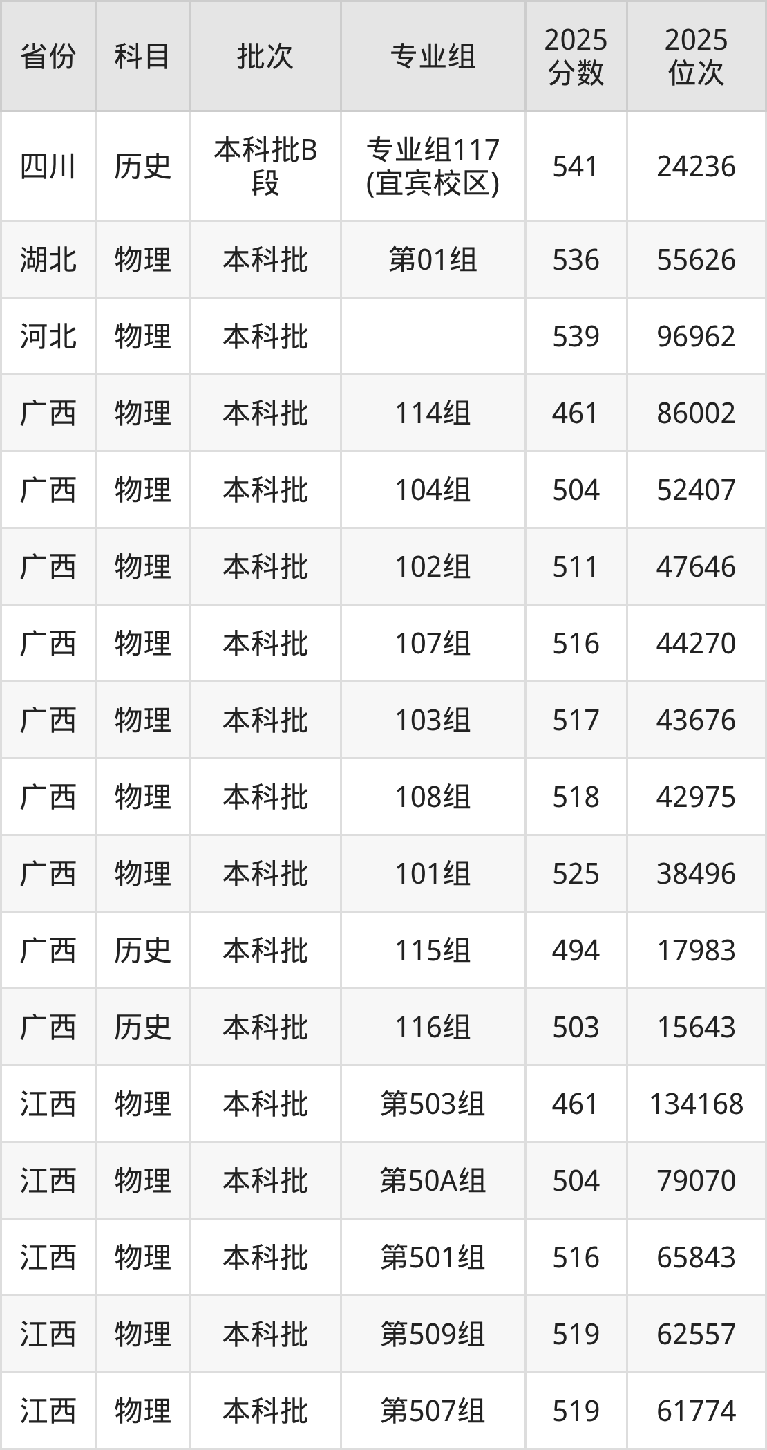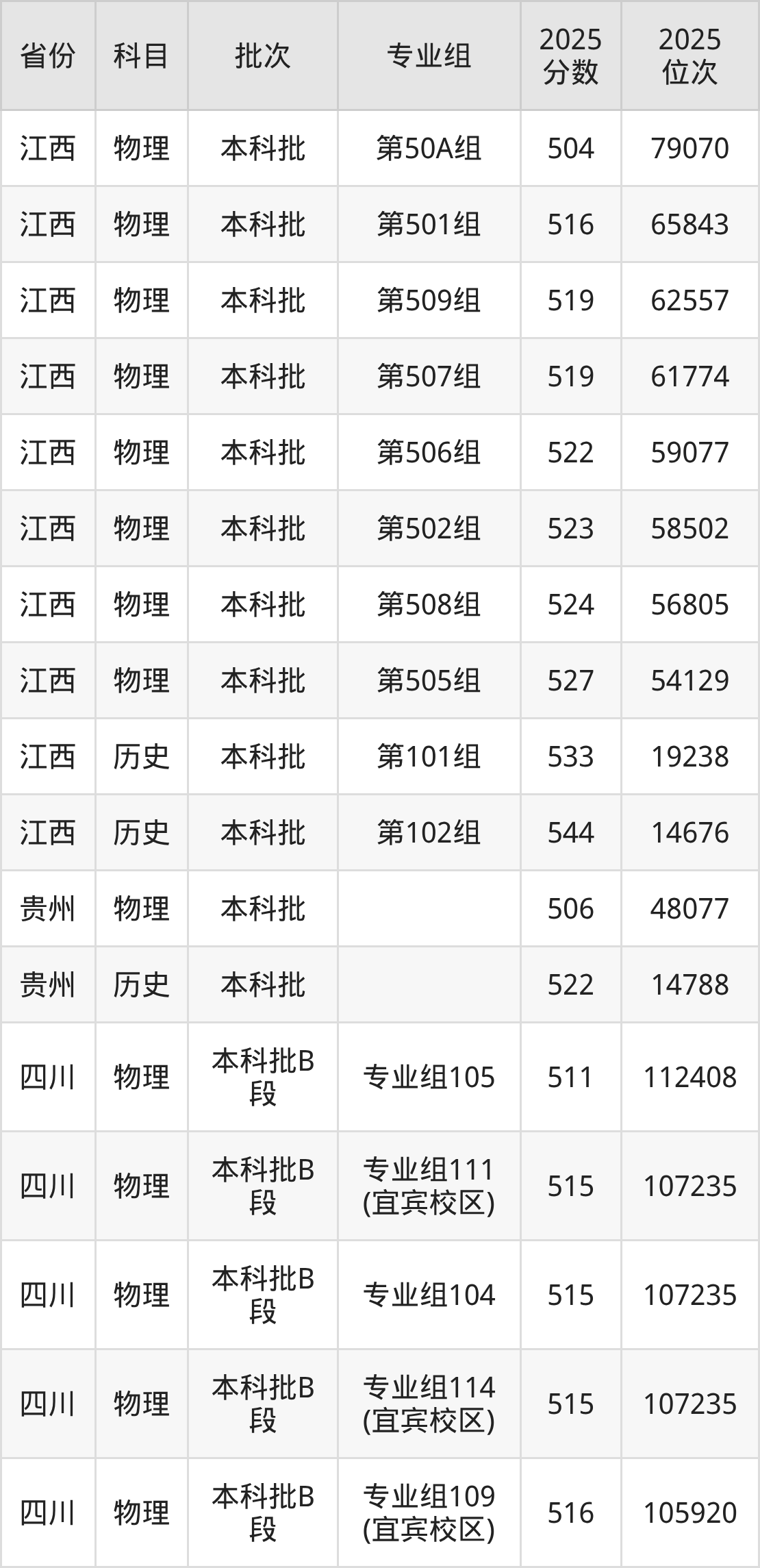 2025年在本科物理类进行招生,各专业组分数线详情如下: