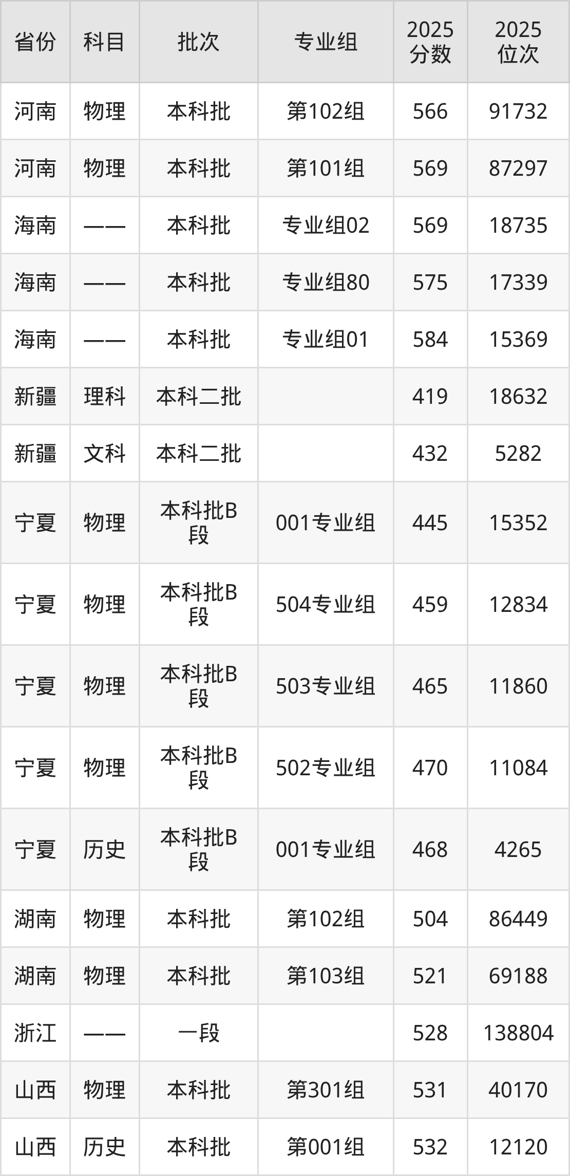 2025年投档录取最低分为522分,录取最低位次为14788名。