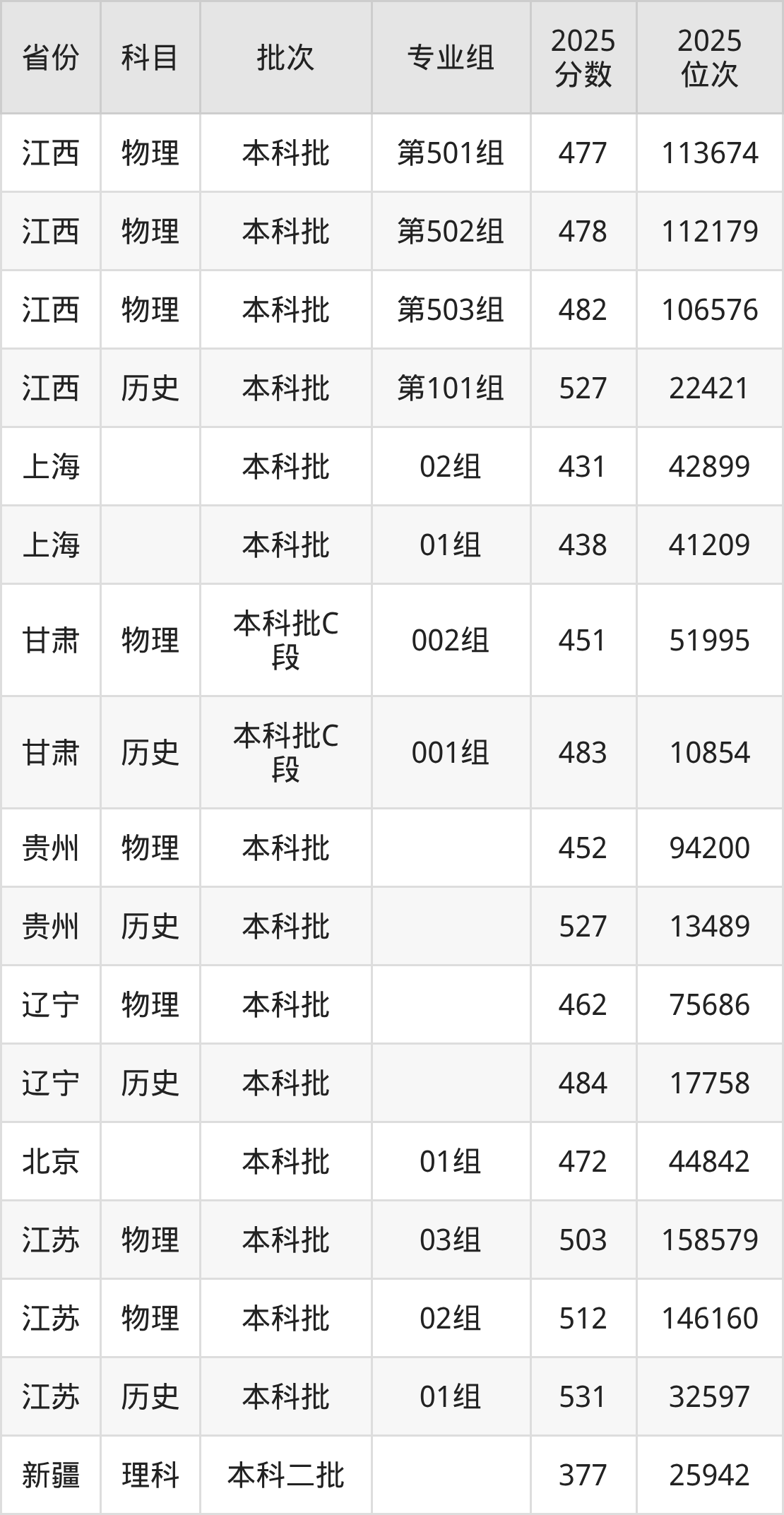 赣东学院502专业组:2025年投档录取最低分为431分,录取最低位次为18072名。