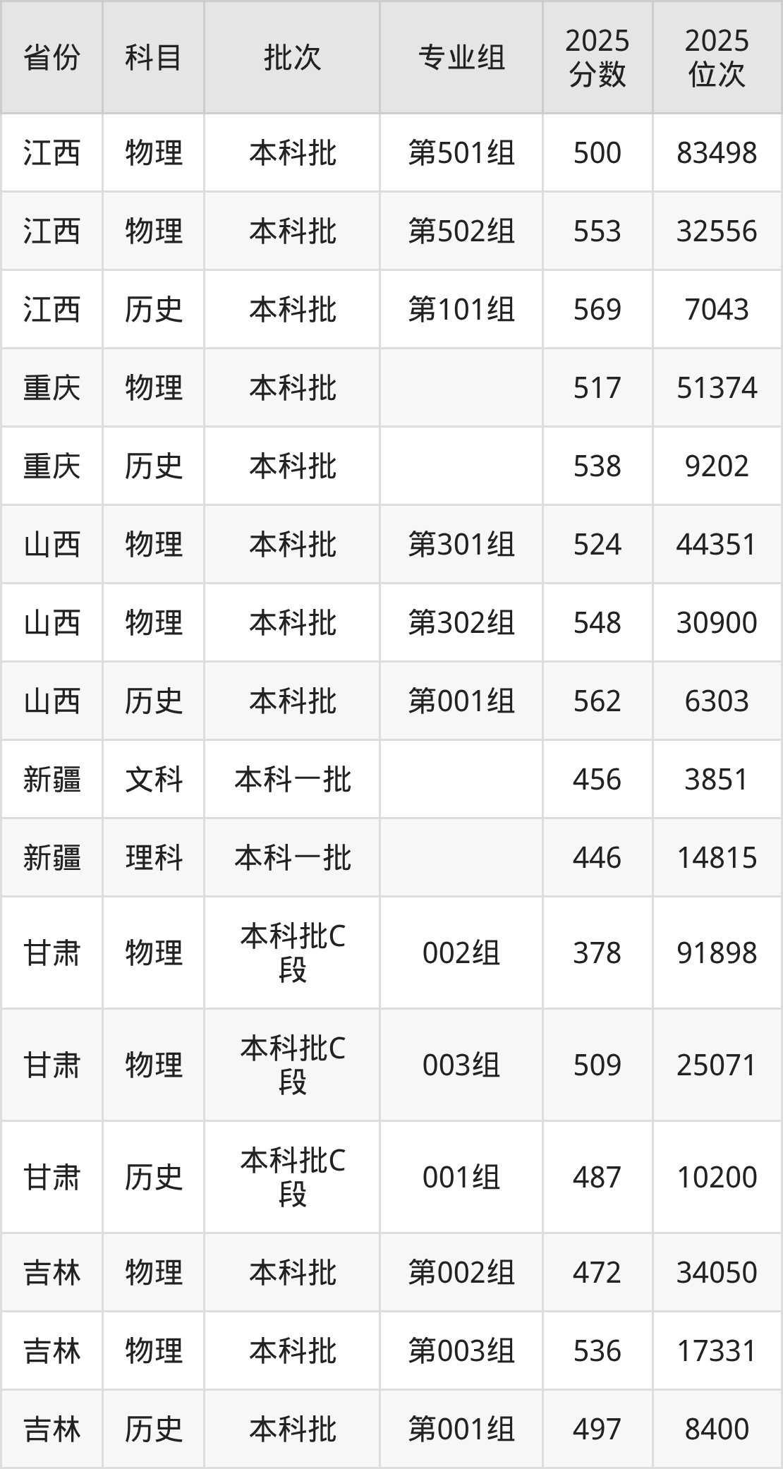 下面是2025年安徽财经大学全国录取分数线一览表,请查阅。