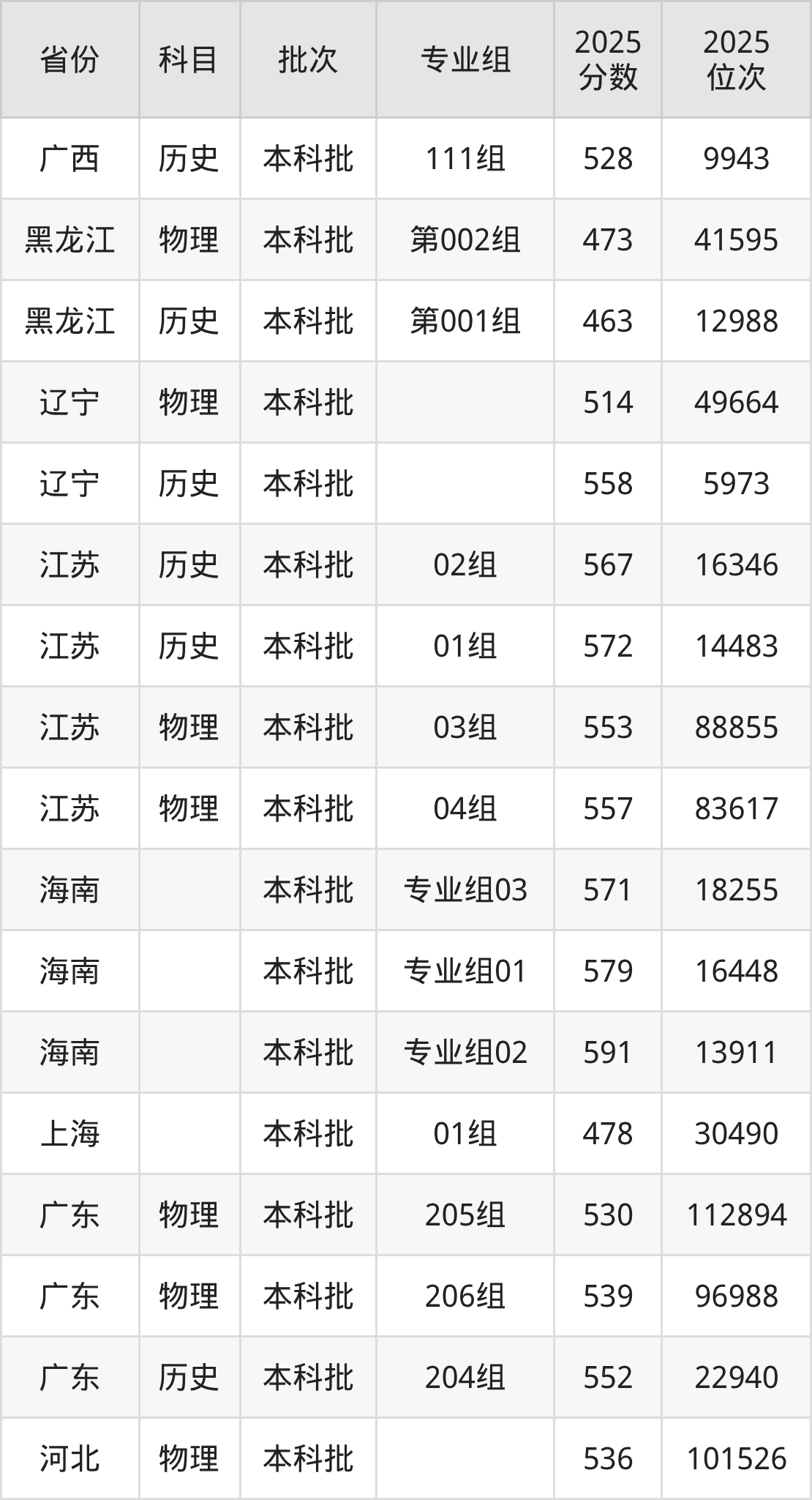 2025年投档录取最低分为558分,录取最低位次为5973名。