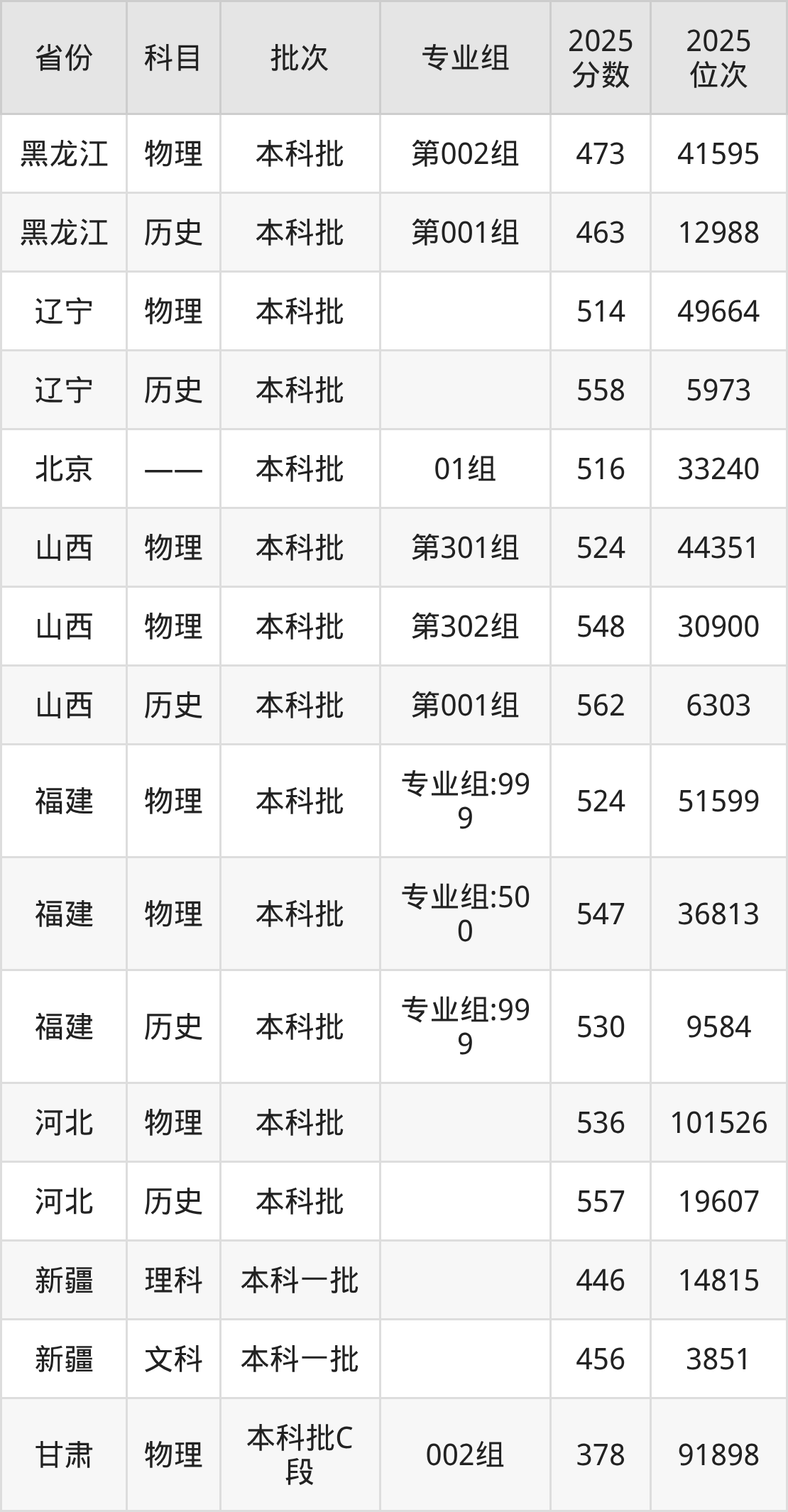 普通类本科物理类最低526分,本科历史类最低549分