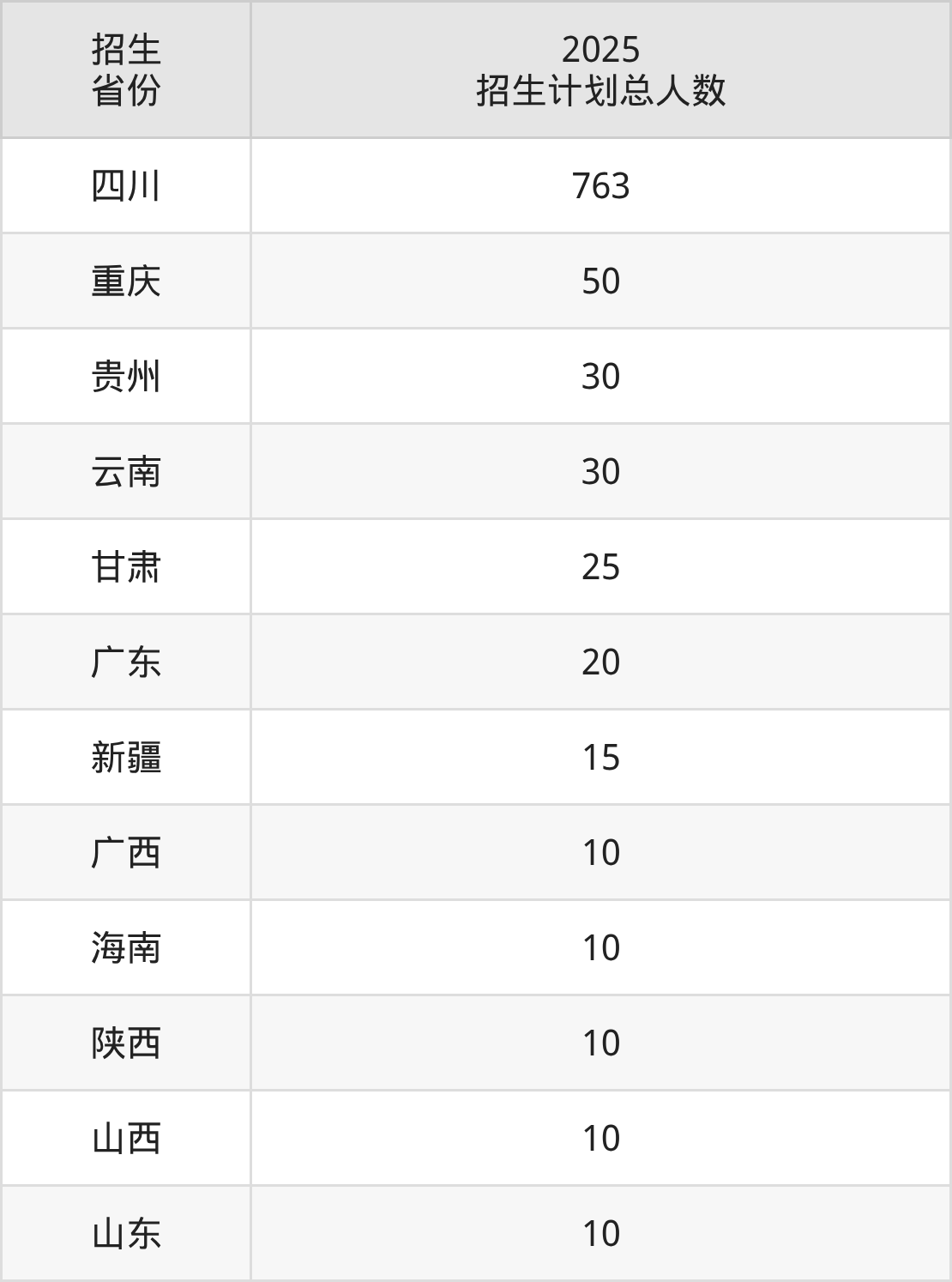 2025年四川工商职业技术学院面向全国12个省市开展专科招生;招生专业共28个,招生人数共983人。2025年在四川省招生计划总人数是763人,其中,四川工商职业技术学院在四川省招生人数最多的是信息安全技术应用。四川工商职业技术学院在各省具体招生人数情况如下表。