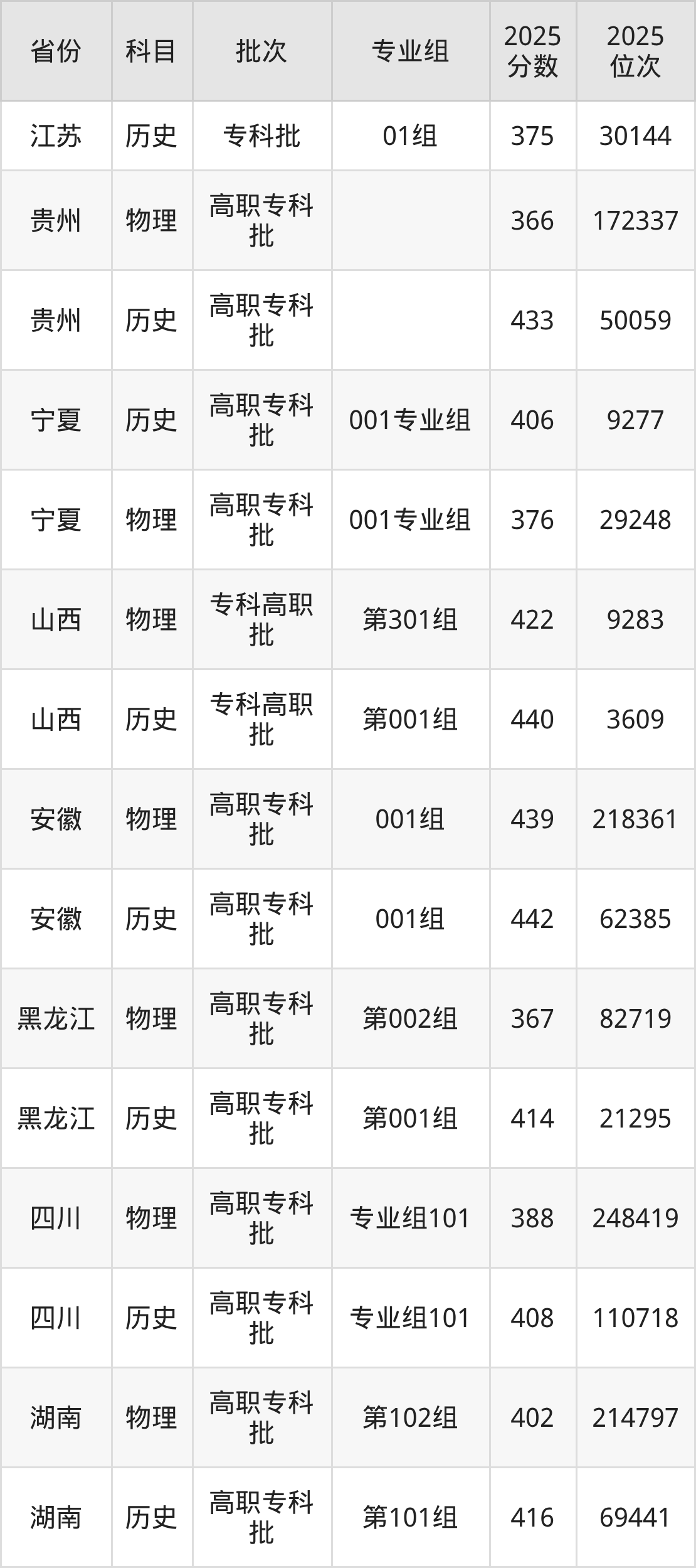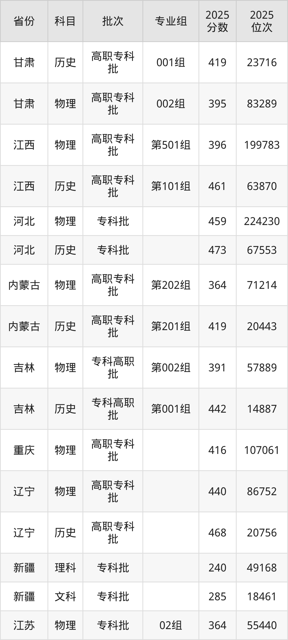 下面是2025年包头铁道职业技术学院全国录取分数线一览表,请查阅。