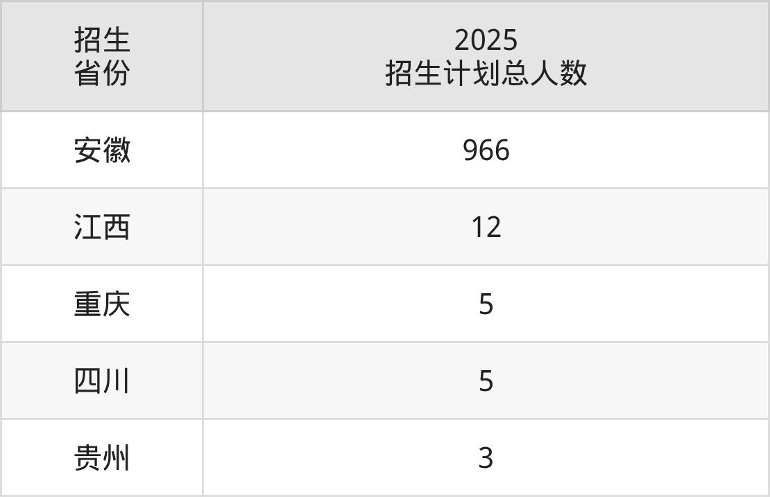 2025年马鞍山师范高等专科学校面向全国5个省市开展专科招生;招生专业共30个,招生人数共991人。2025年在安徽省招生计划总人数是966人,其中,马鞍山师范高等专科学校在安徽省招生人数最多的是小学语文教育。马鞍山师范高等专科学校在各省具体招生人数情况如下表。
