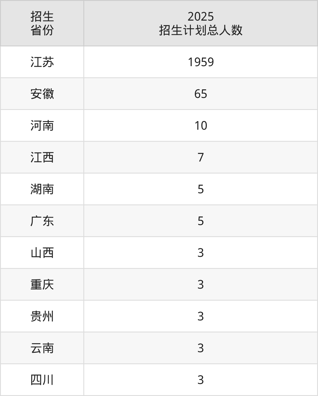 2025年江苏卫生健康职业学院面向全国11个省市开展专科招生;招生专业共23个,招生人数共2066人。2025年在江苏省招生计划总人数是1959人,其中,江苏卫生健康职业学院在江苏省招生人数最多的是临床医学。江苏卫生健康职业学院在各省具体招生人数情况如下表。