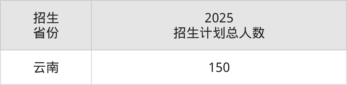 2025年云南交通运输职业学院面向全国1个省市开展专科招生;招生专业共3个,招生人数共150人。其中,云南交通运输职业学院在云南省招生人数最多的是飞机机电设备维修。云南交通运输职业学院在各省具体招生人数情况如下表。