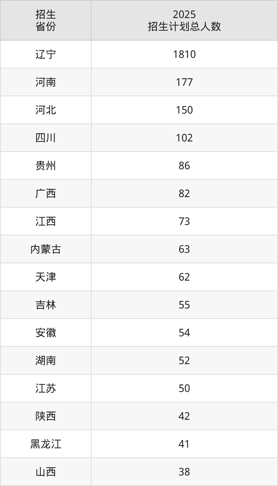 2025年沈阳城市学院面向全国21个省市开展本科招生;招生专业共33个,招生人数共3036人。2025年在辽宁省招生计划总人数是1810人,其中,沈阳城市学院在辽宁省招生人数最多的是汉语言文学。沈阳城市学院在各省具体招生人数情况如下表。