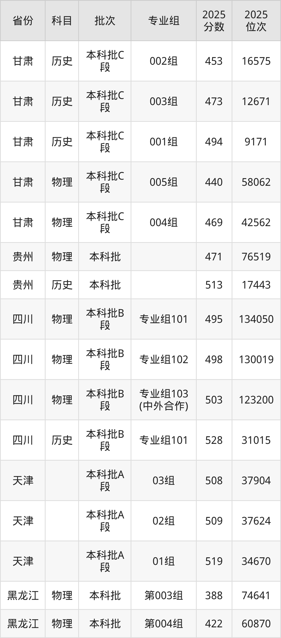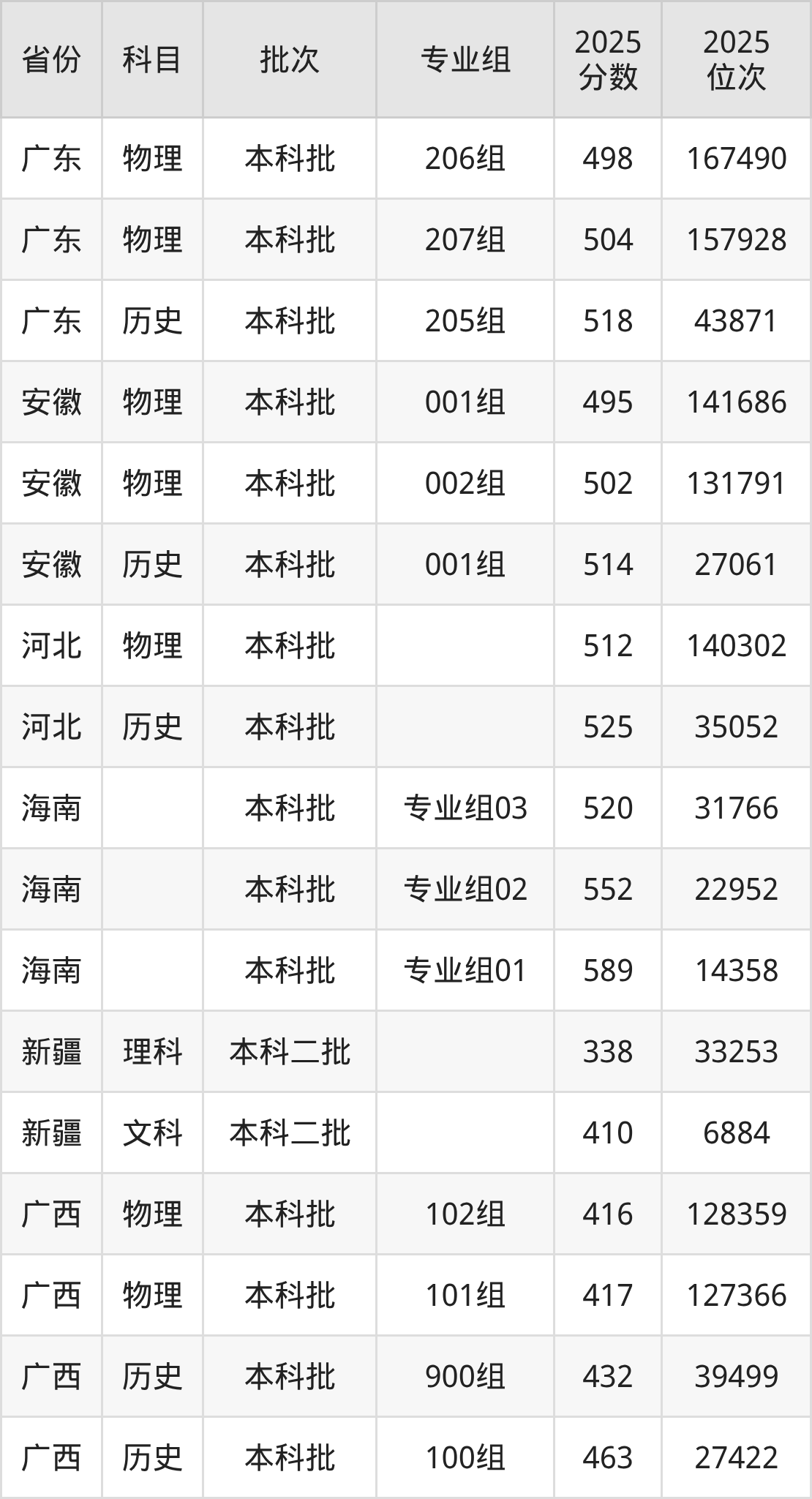 2025年投档录取最低分为338分,录取最低位次为33253名。