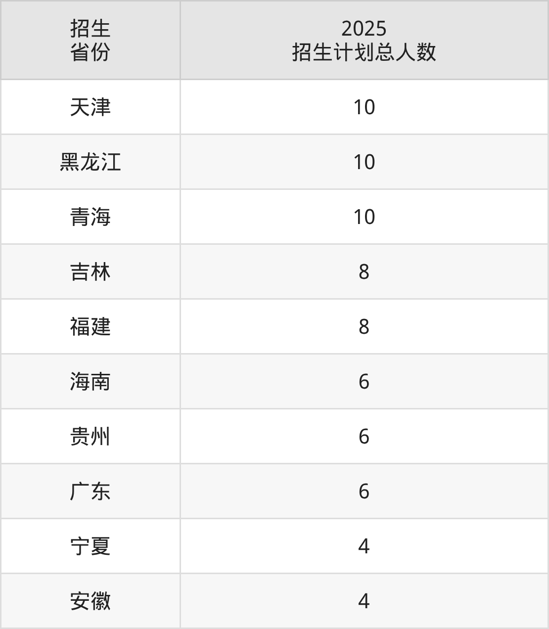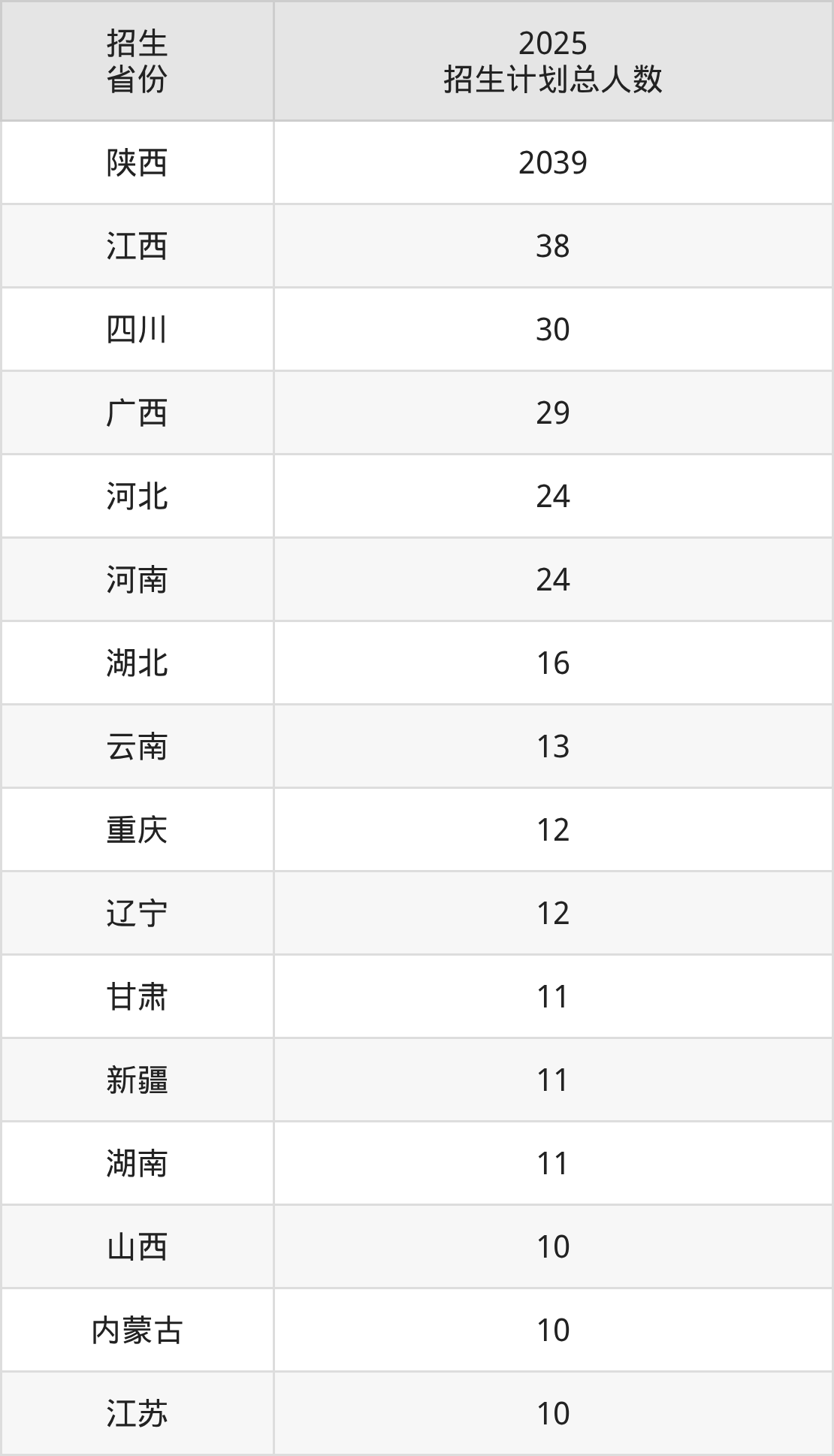 2025年商洛学院面向全国26个省市开展本科招生;招生专业共36个,招生人数共2372人。2025年在陕西省招生计划总人数是2039人,其中,商洛学院在陕西省招生人数最多的是数学与应用数学。商洛学院在各省具体招生人数情况如下表。