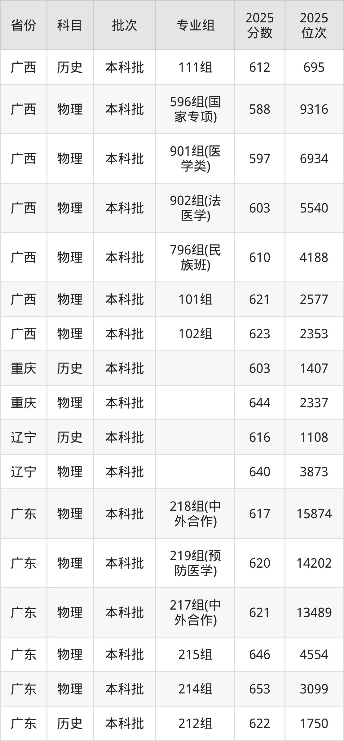 普通类本科物理类最低617分,本科历史类最低622分