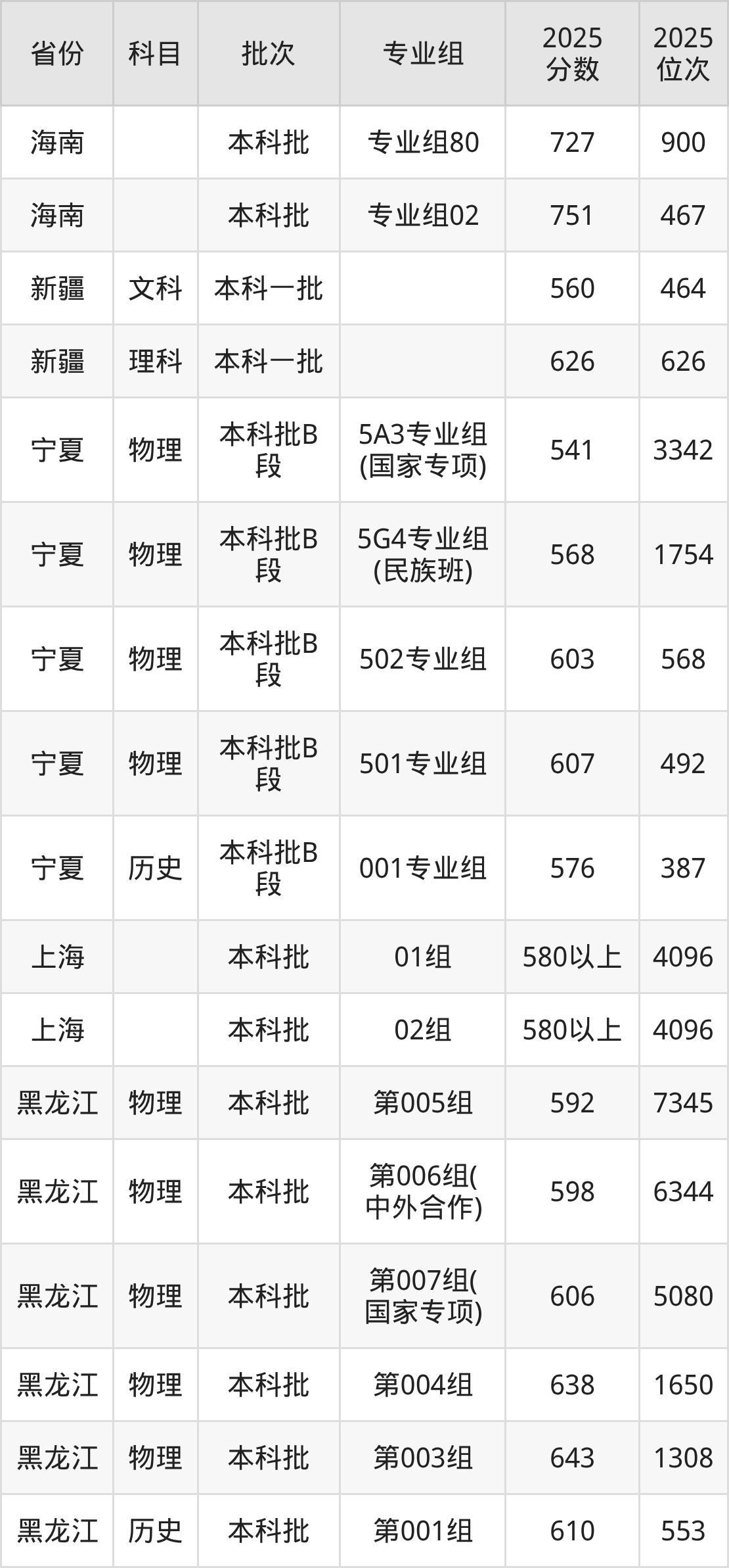 华中科技大学008专业组(国家专项计划):2025年投档录取最低分为587分,录取最低位次为4998名。