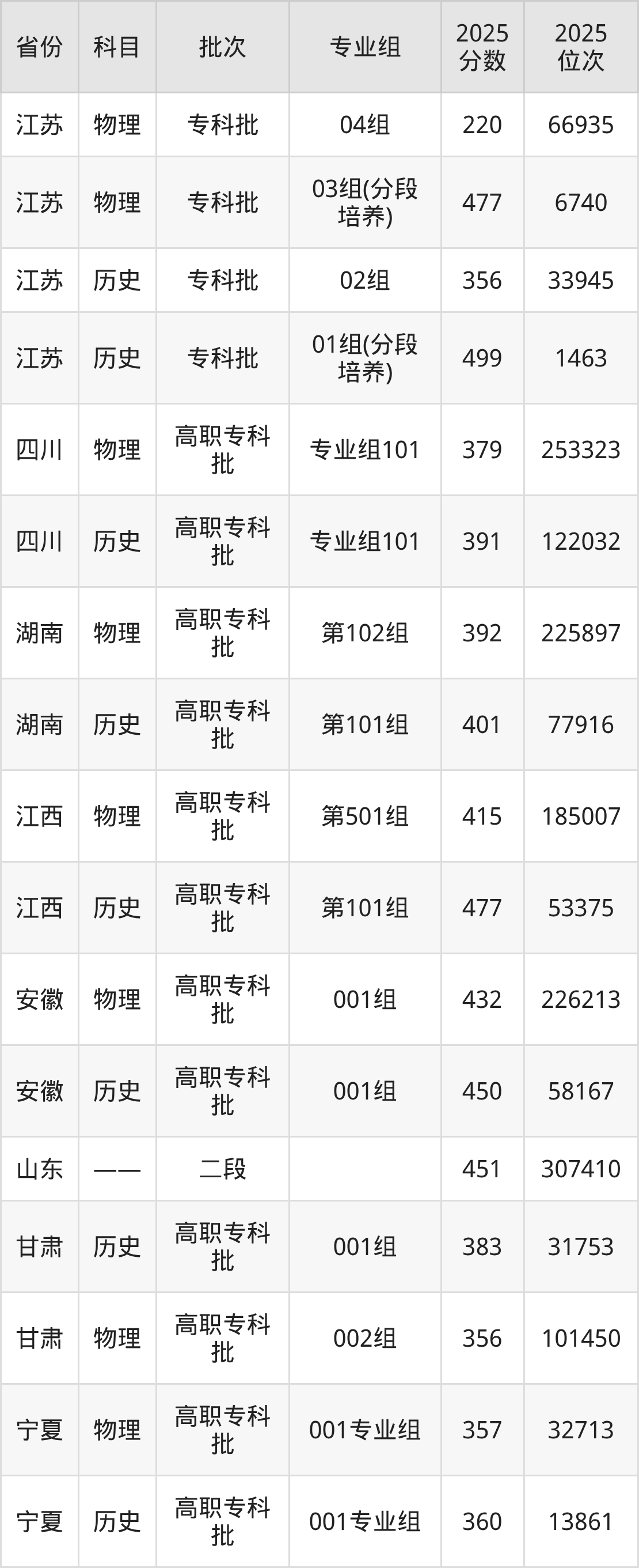 下面是2025年镇江市高等专科学校全国录取分数线一览表,请查阅。