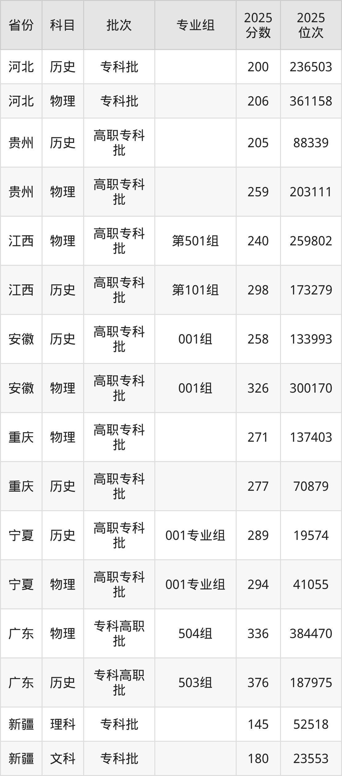 2025年重庆智能工程职业学院全国录取分数线是145分到376分,录取最低在新疆理科、录取最高在广东历史类(503组)。各省各专业组最低分具有差异,详情如下: