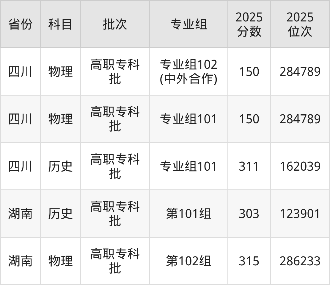 重庆智能工程职业学院专业组102(中外合作):2025年投档录取最低分为150分,录取最低位次为284789名。