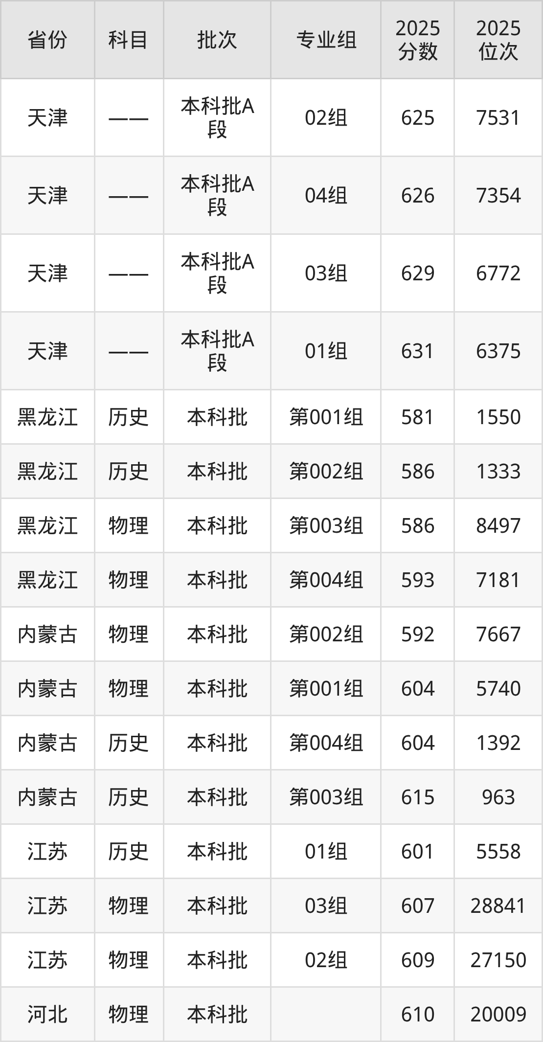 中国石油大学(北京)001组:2025年投档录取最低分为603分,录取最低位次为2991名。
