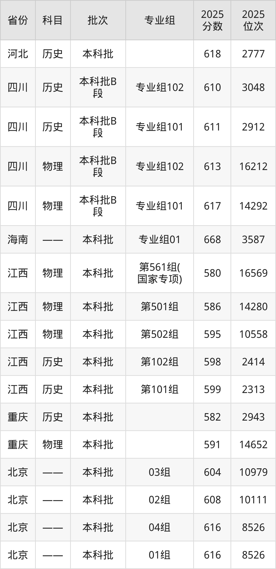 中国石油大学(北京)专业组101:2025年投档录取最低分为617分,录取最低位次为14292名。