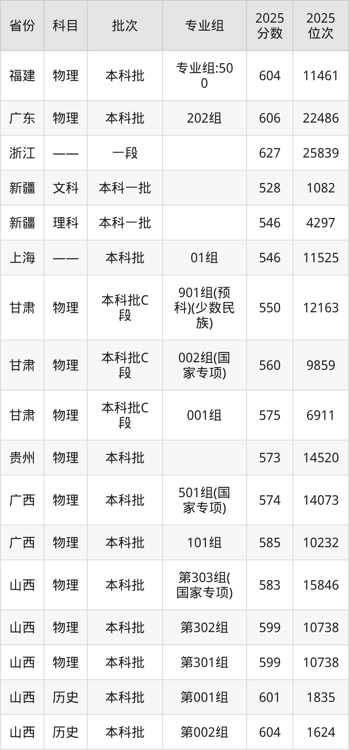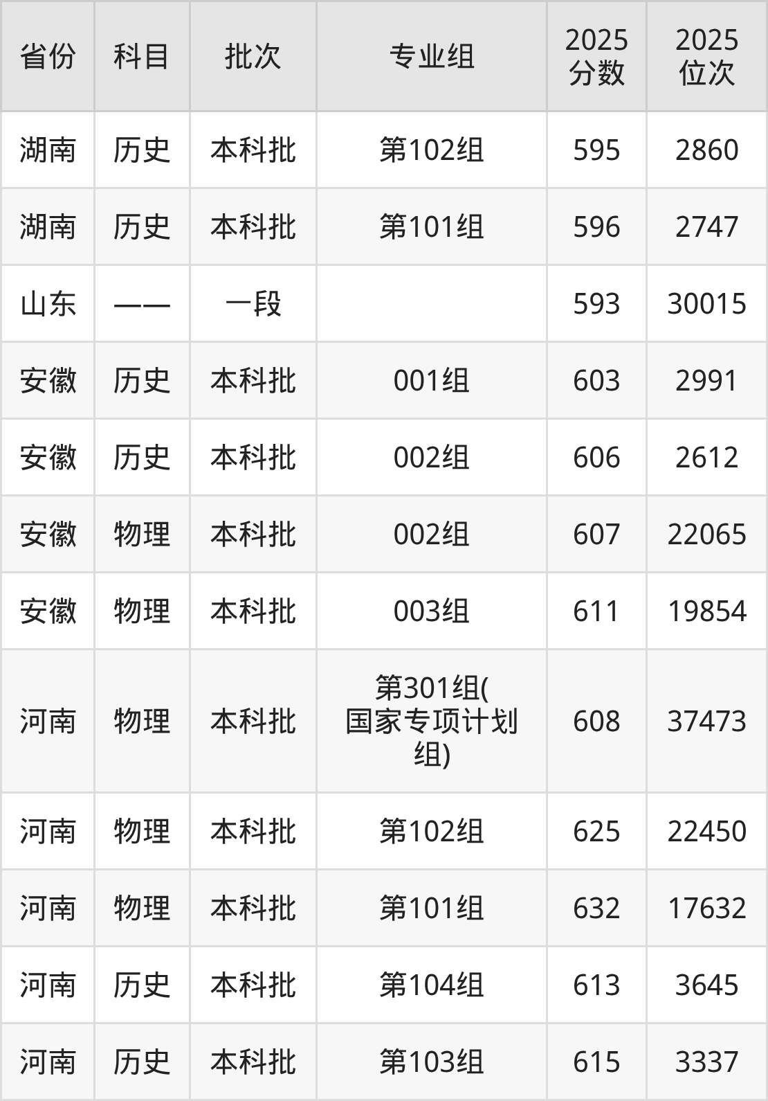 普通类本科物理类最低592分,本科历史类最低604分