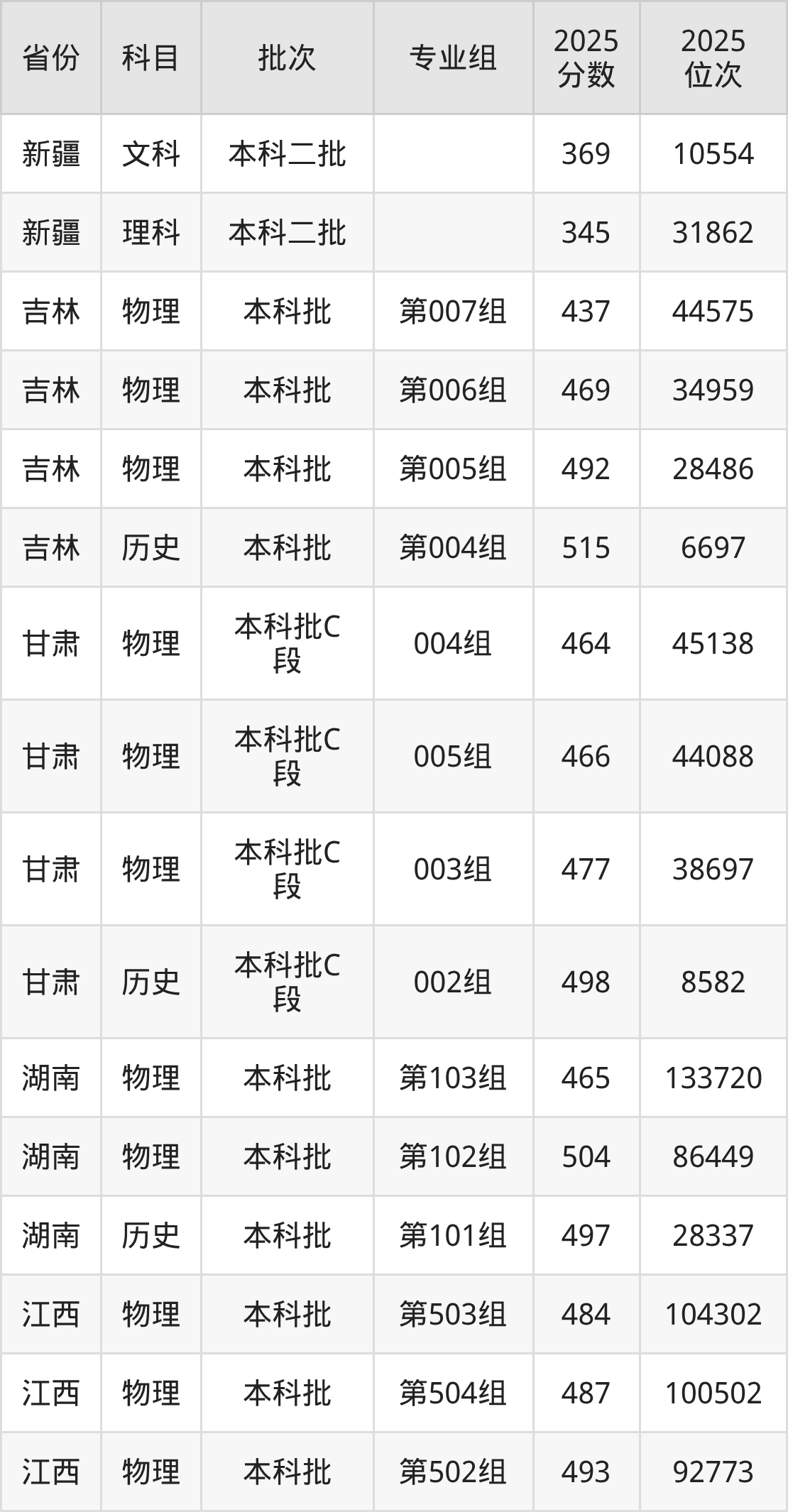 2025年投档录取最低分为369分,录取最低位次为10554名。