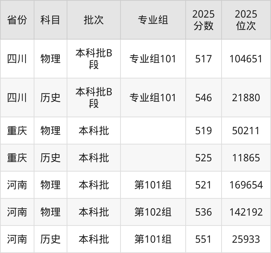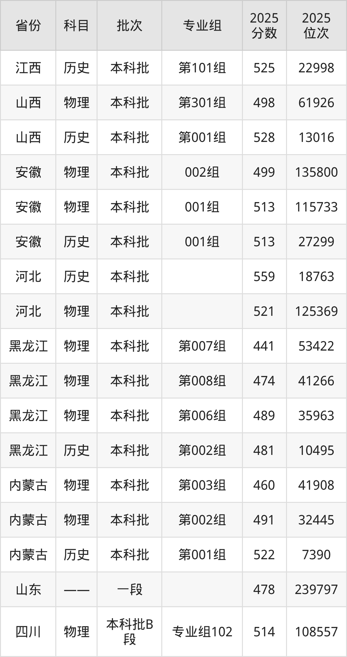 2025年投档录取最低分为559分,录取最低位次为18763名。