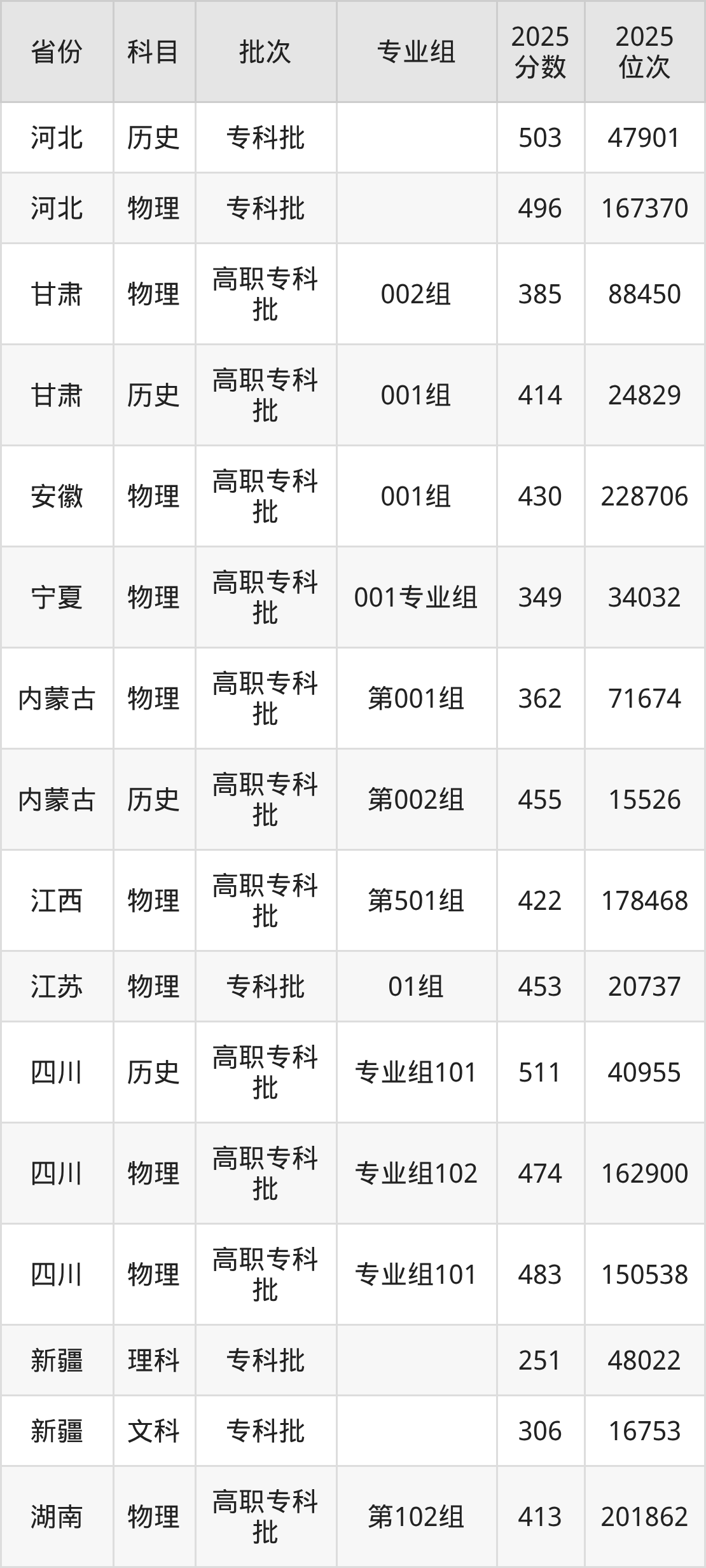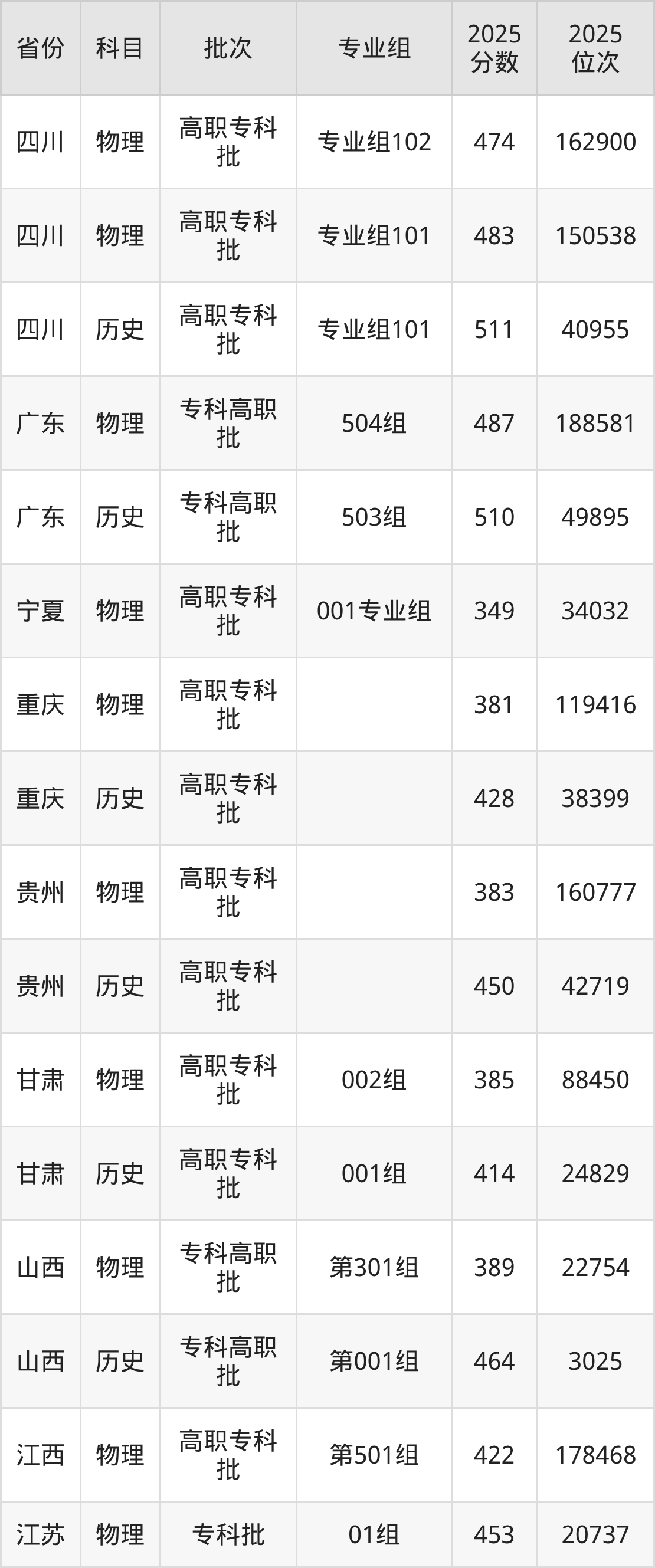 下面是2025年四川交通职业技术学院全国录取分数线一览表,请查阅。