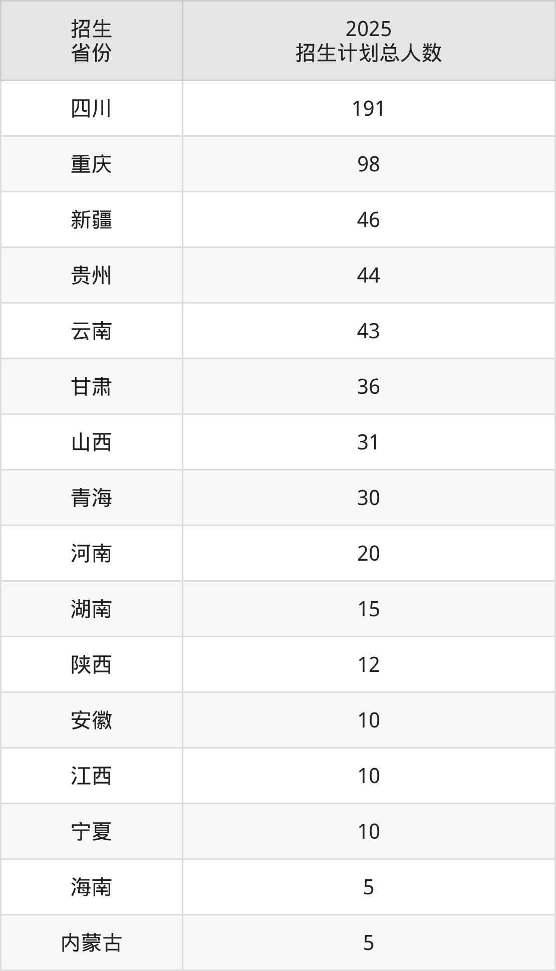 2025年四川交通职业技术学院面向全国20个省市开展专科招生;招生专业共16个,招生人数共619人。2025年在四川省招生计划总人数是191人,其中,四川交通职业技术学院在四川省招生人数最多的是氢能技术应用。四川交通职业技术学院在各省具体招生人数情况如下表。