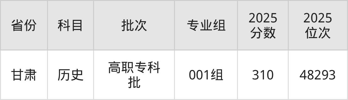 南充科技职业学院001专业组:2025年投档录取最低分为310分,录取最低位次为48293名。