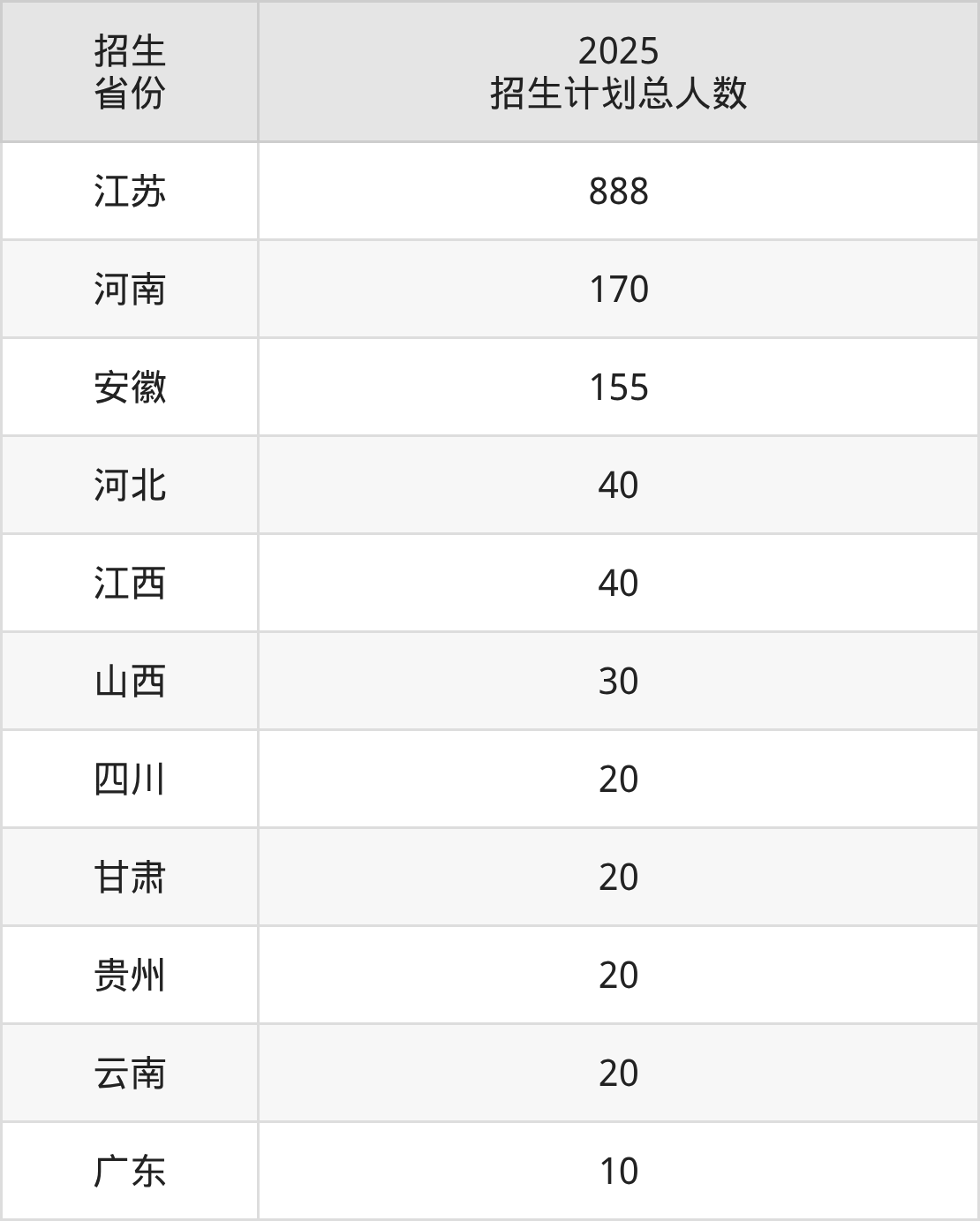 2025年南通职业大学面向全国11个省市开展专科招生;招生专业共33个,招生人数共1413人。2025年在江苏省招生计划总人数是888人,其中,南通职业大学在江苏省招生人数最多的是新能源汽车技术。南通职业大学在各省具体招生人数情况如下表。