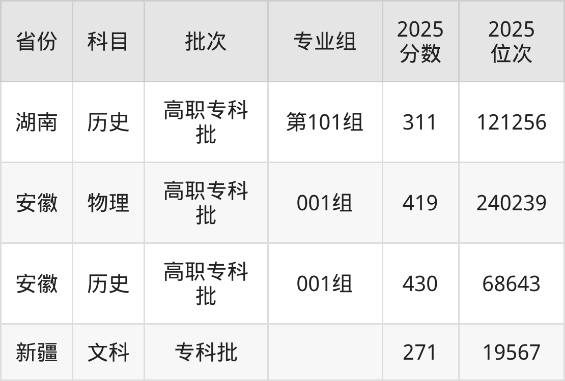 2025年在专科文科进行招生,各专业组分数线详情如下:
