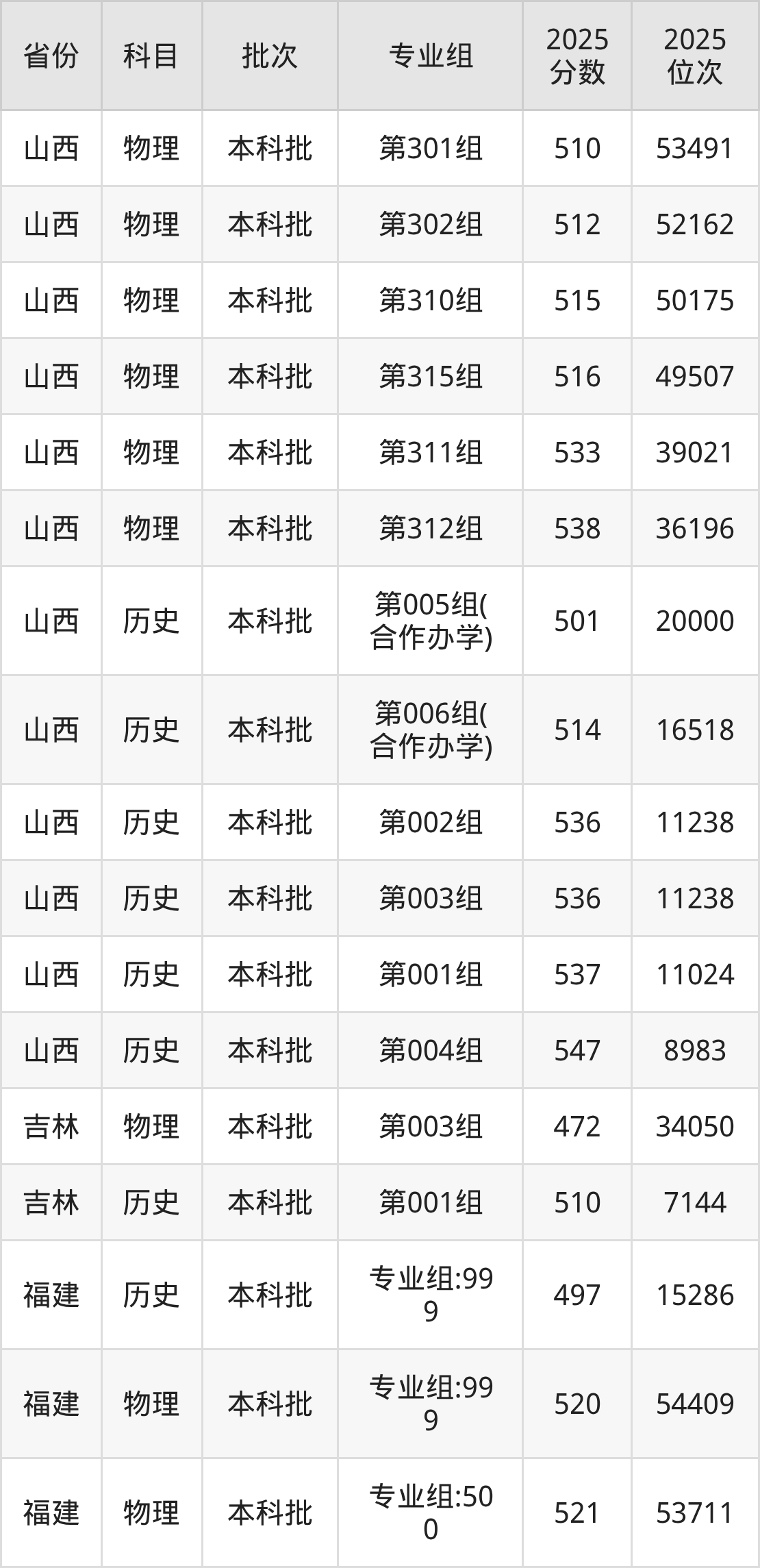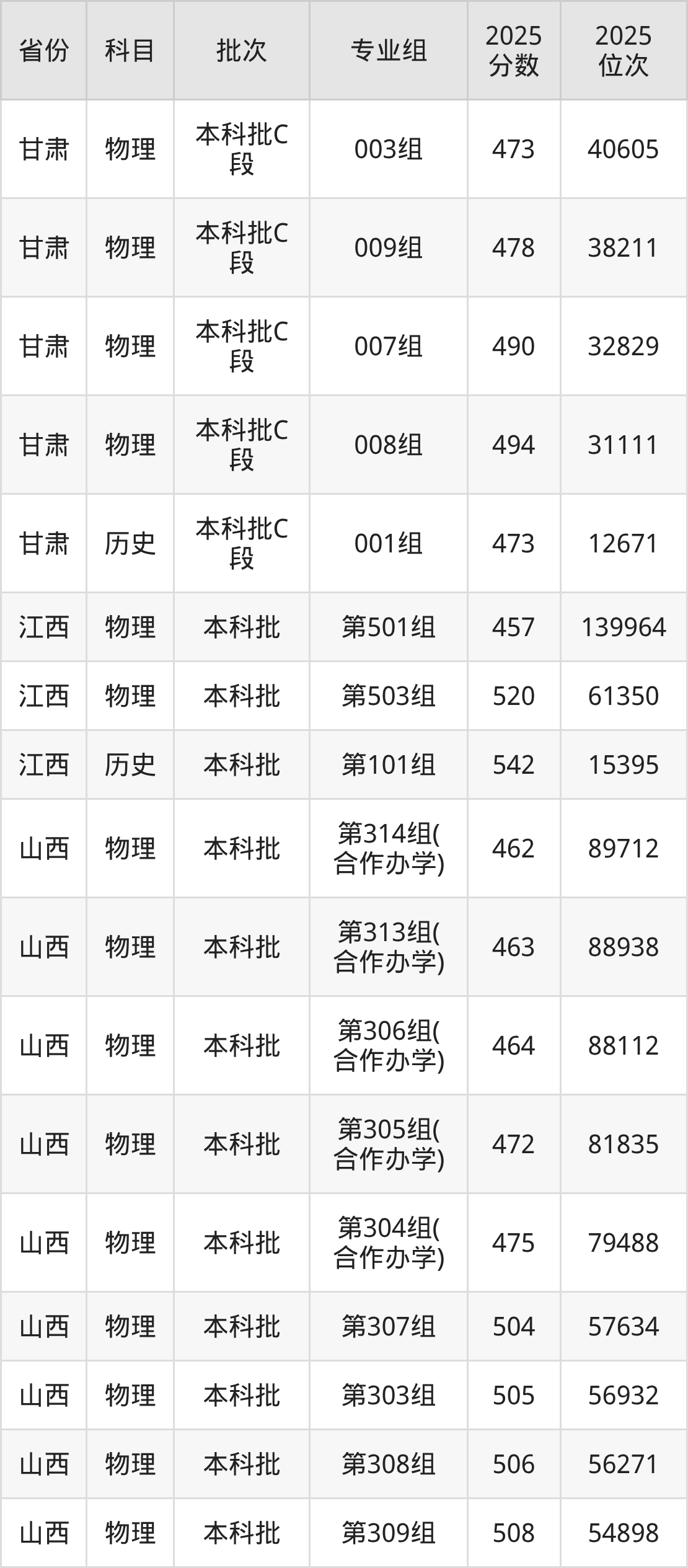 2025年投档录取最低分为513分,录取最低位次为14604名。