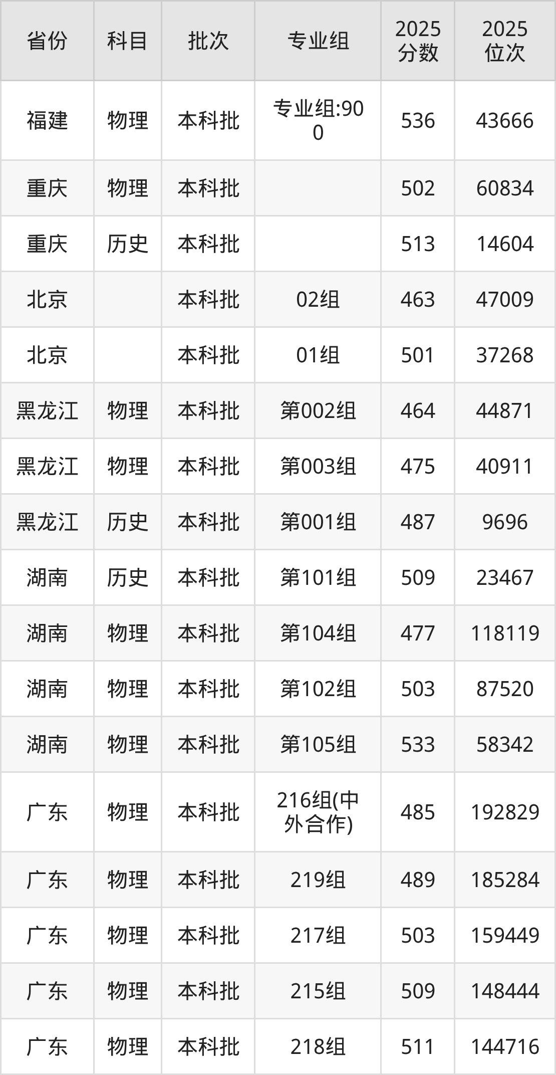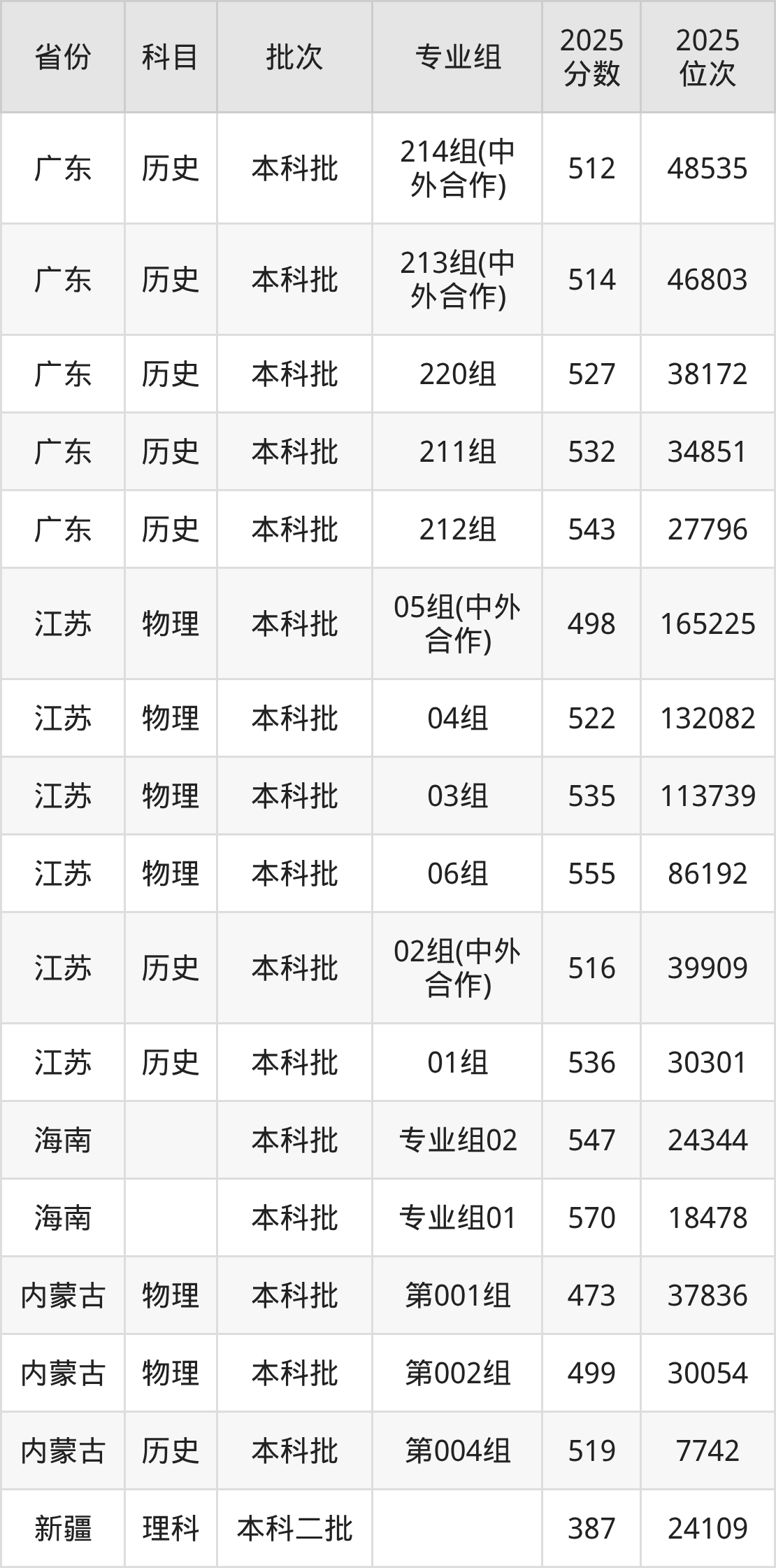 土木工程(中外合作办学):2025年投档录取最低分为504分。
